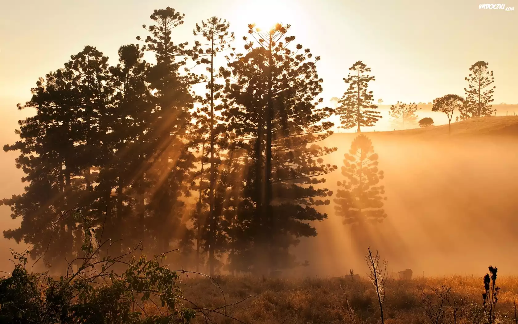 Zachód Słońca, Drzewa, Promienie