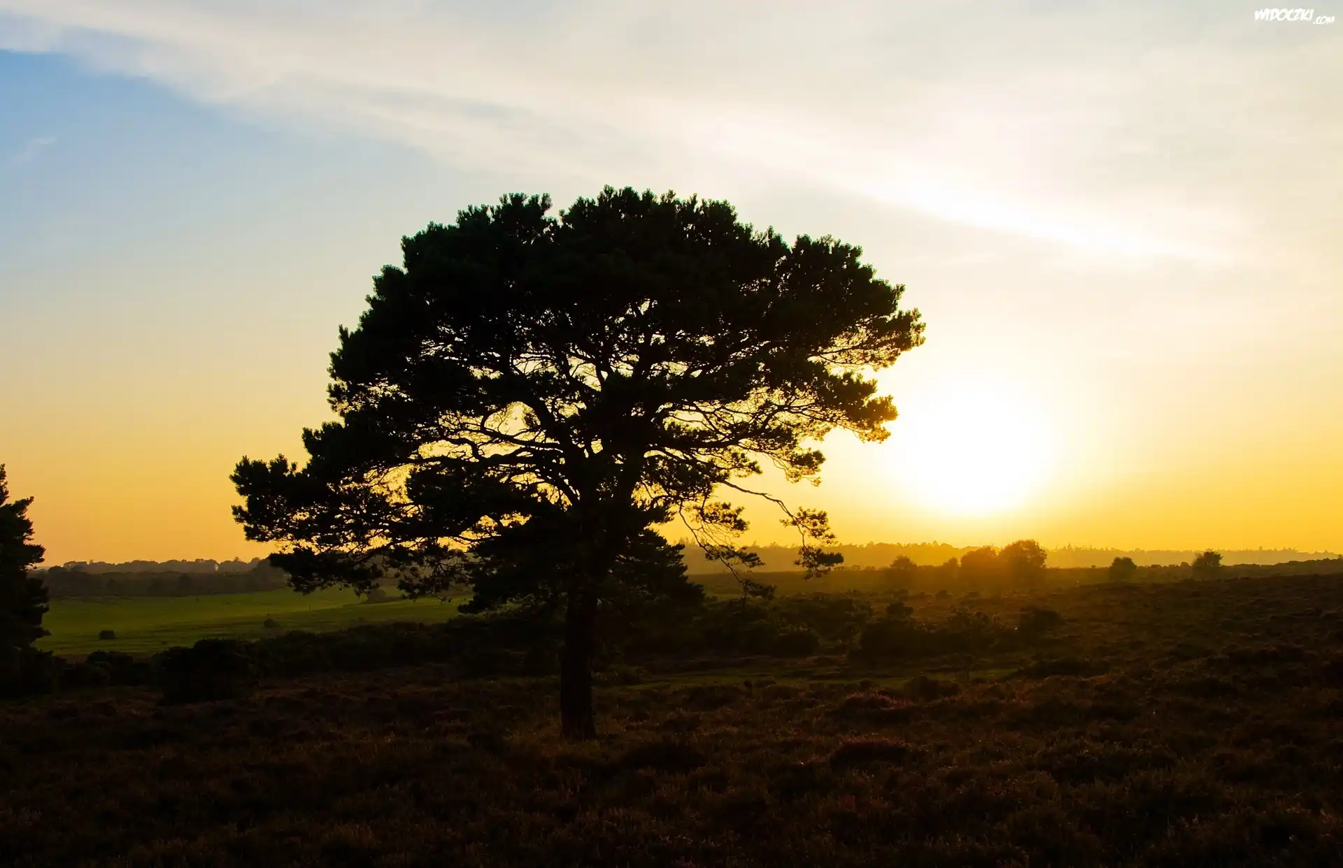 Drzewo, Zachód, Słońca