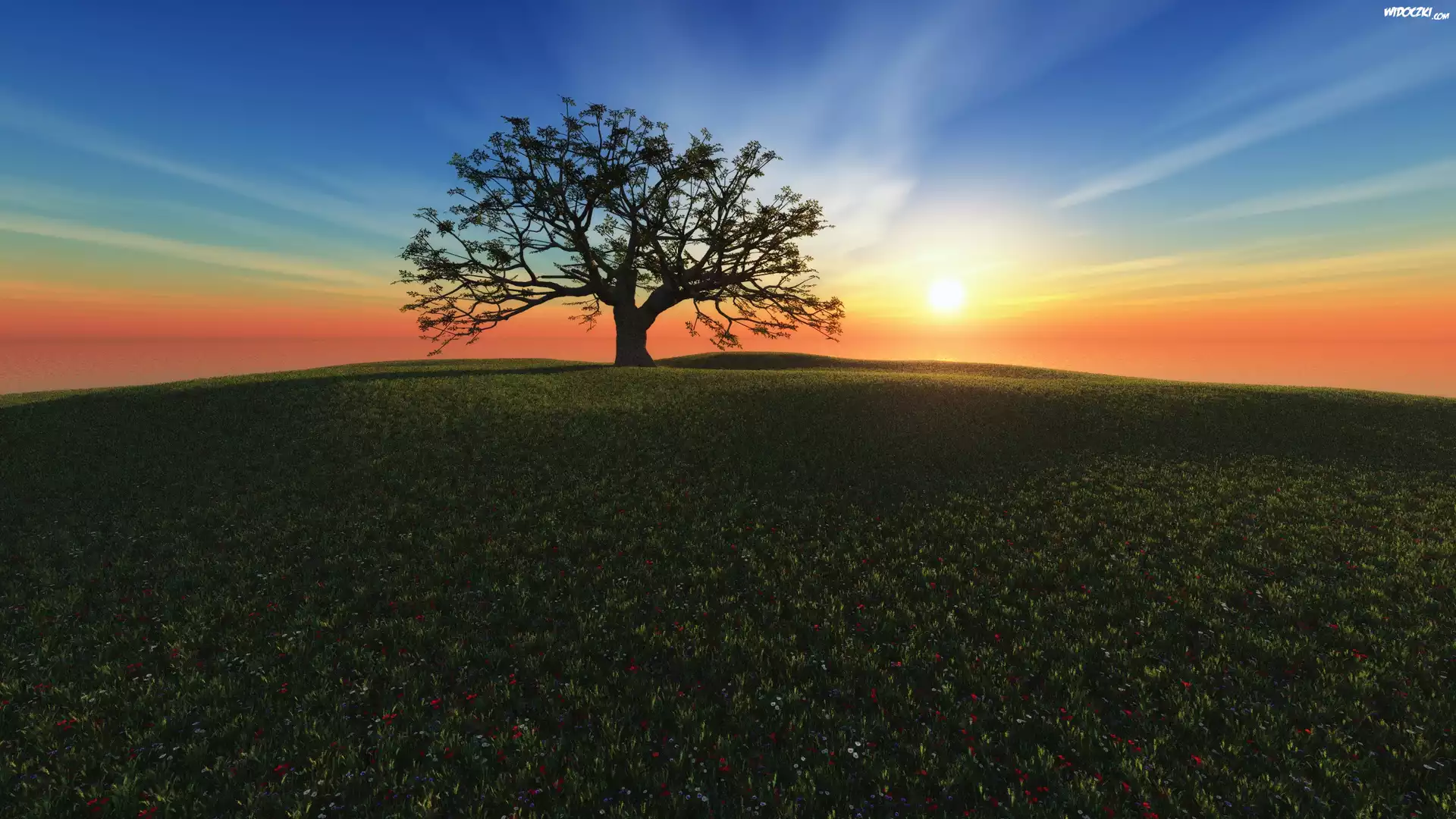 Zdjęcia, Zachód Słońca, Drzewo, Łąka