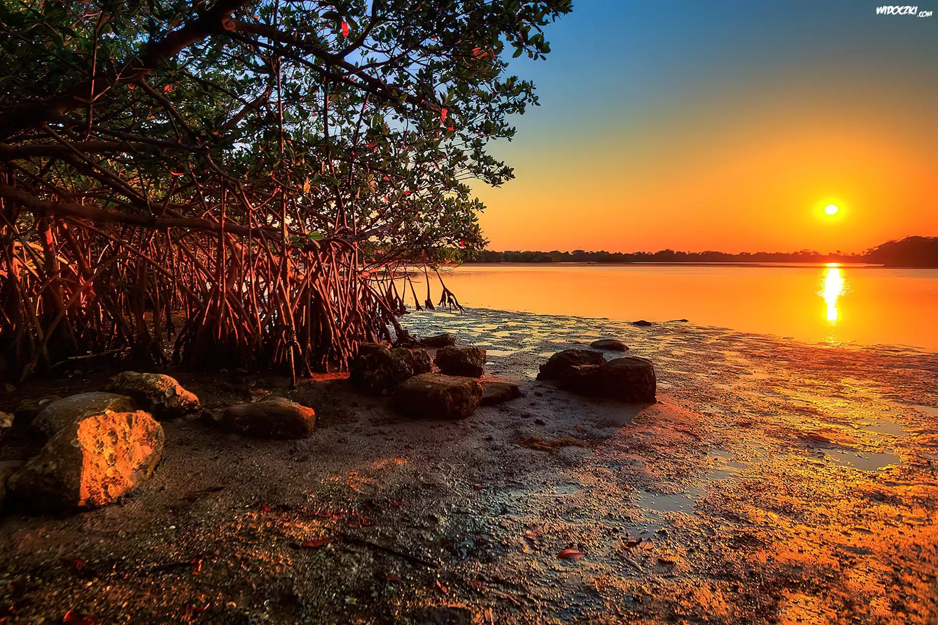 Zdjęcia, Zachód, Słońca, Drzewo, Jezioro