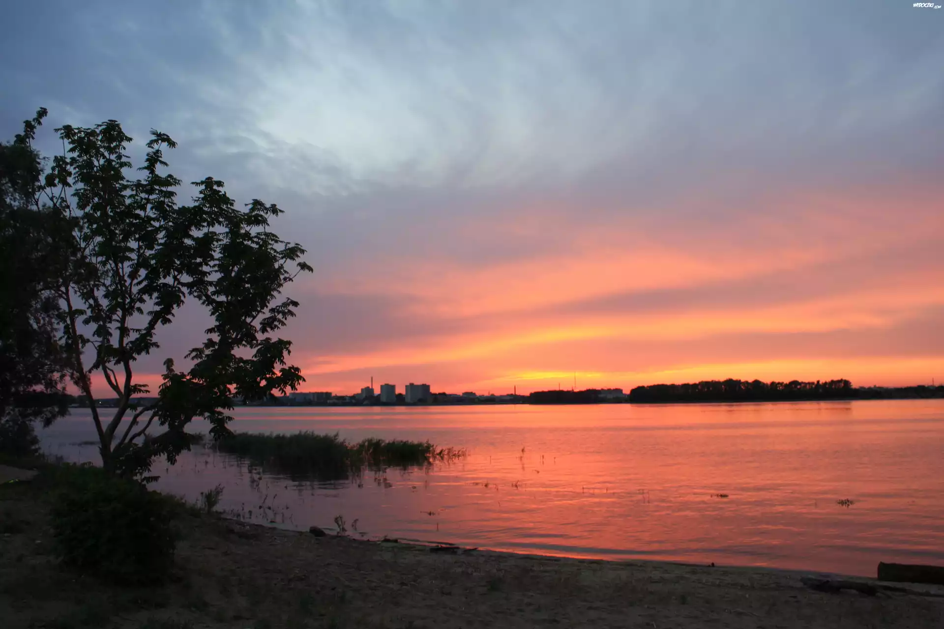 Zdjęcia, Zachód Słońca, Drzewo, Rzeka