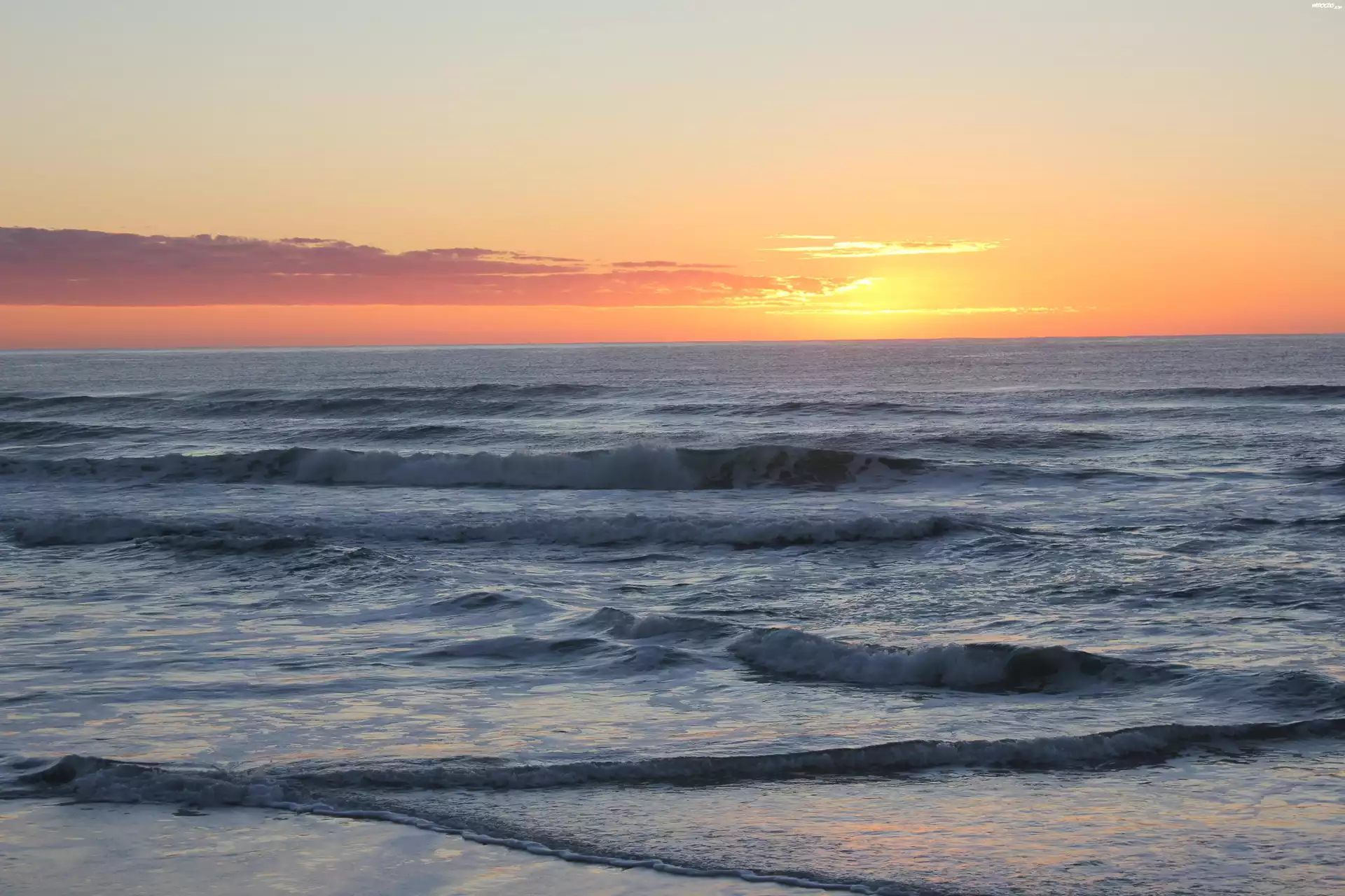 Zdjęcia, Zachód Słońca, Morze, Fale, Woda