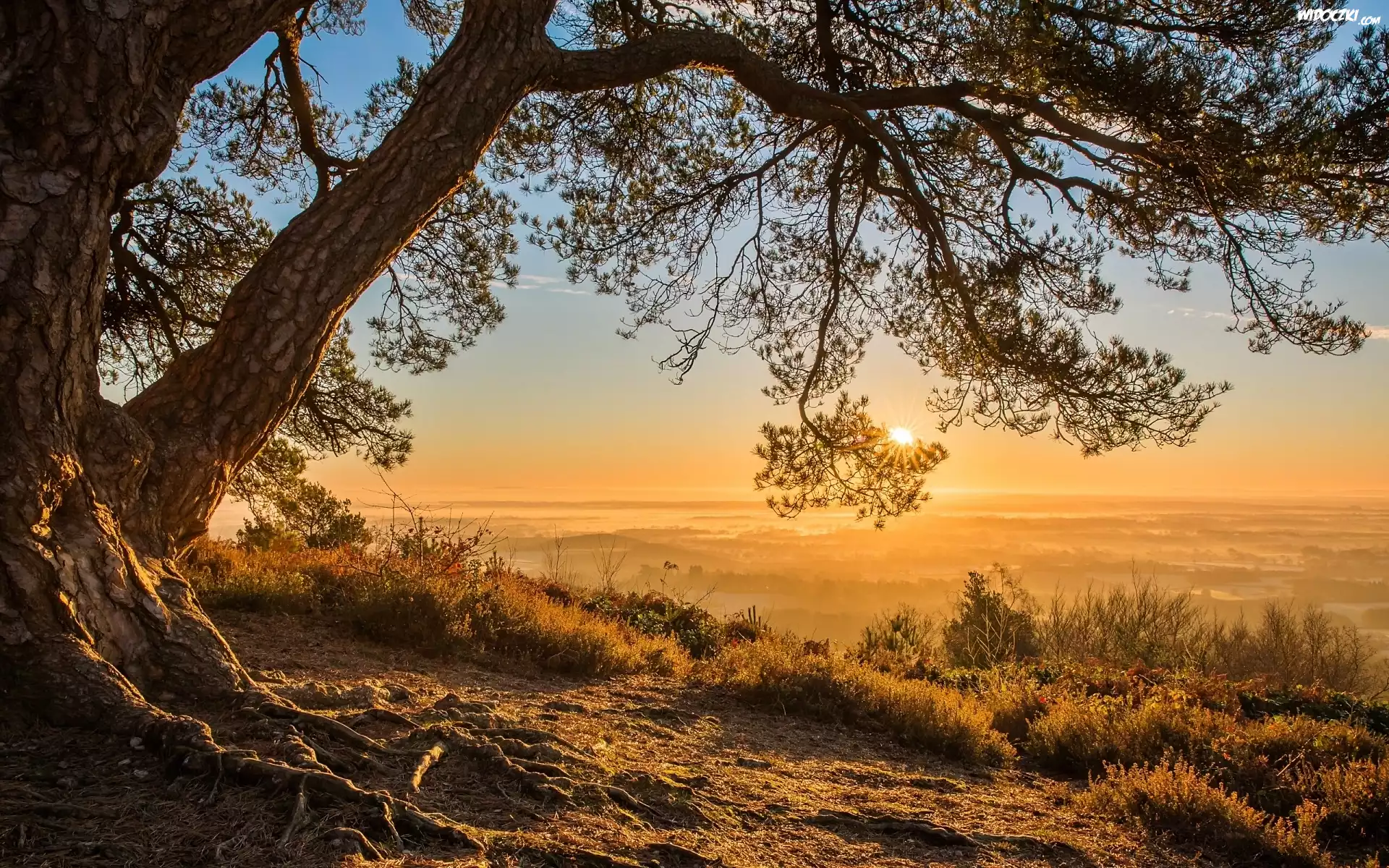 Zdjęcia, Zachód słońca, Drzewo, Gałęzie, Korzenie