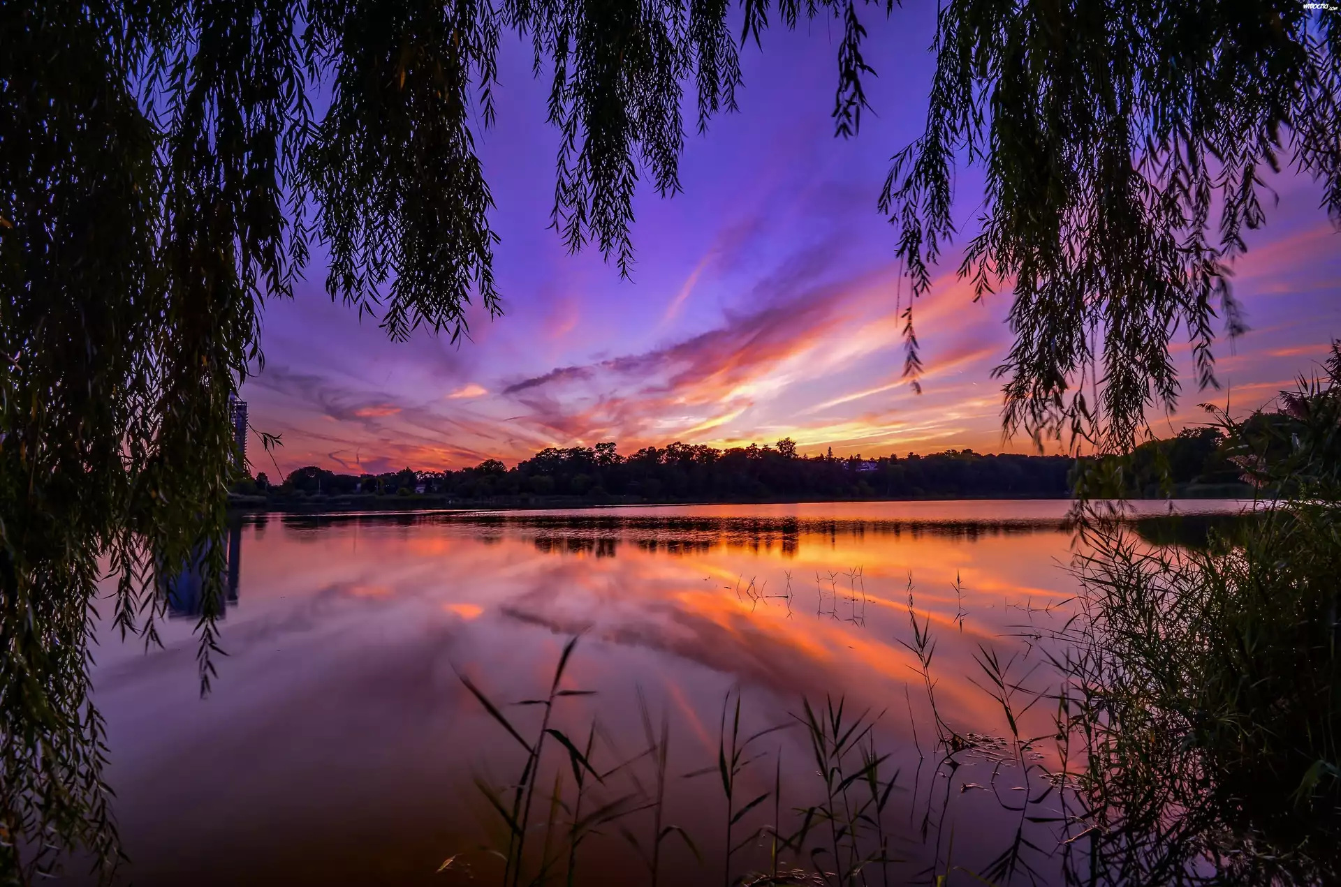 Zdjęcia, Zachód Słońca, Rzeka, Gałęzie Drzew