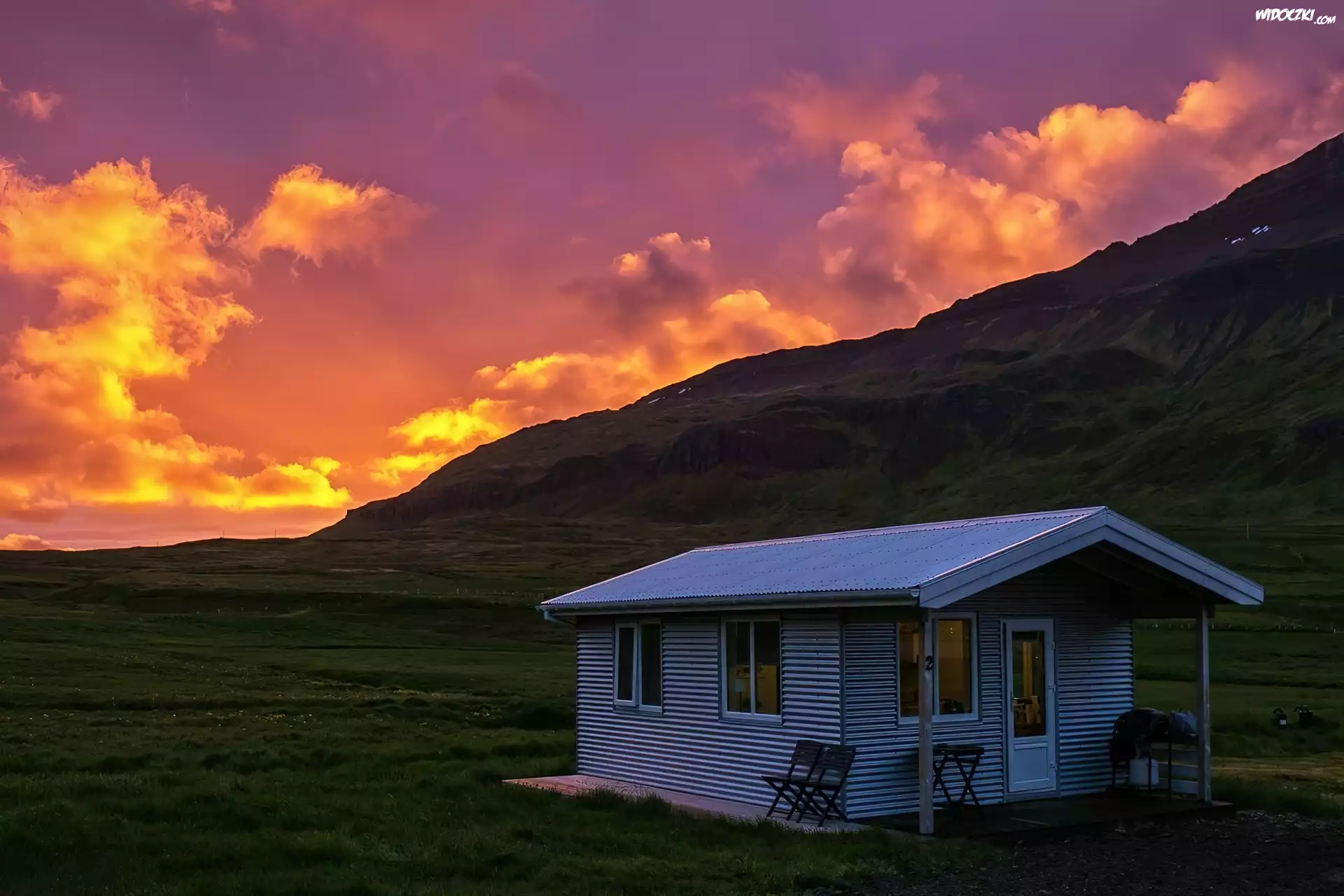 Zdjęcia, Zachód, Słońca, Góra, Domek
