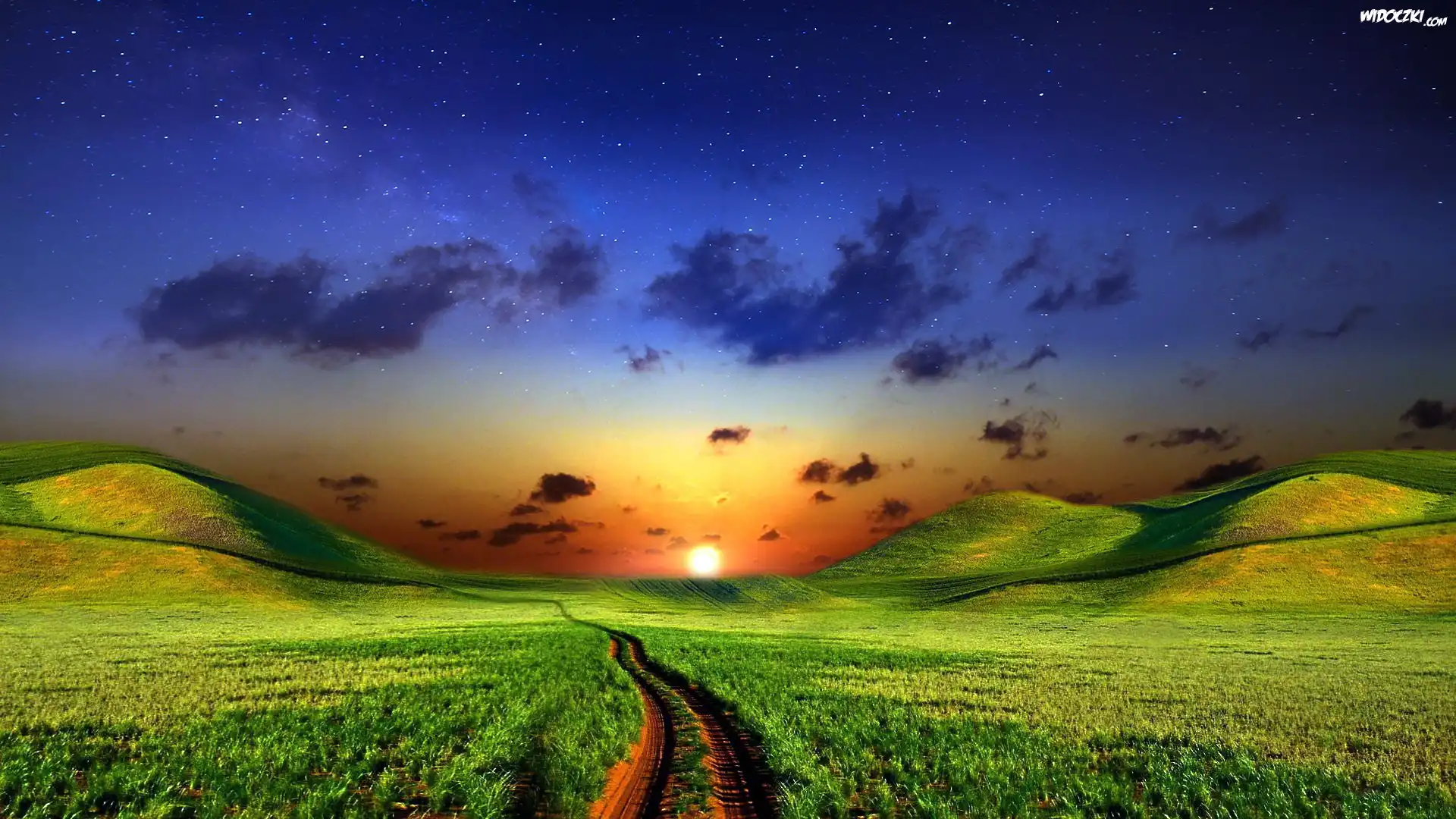 Zachód Słońca, Fale Zielona, Trawa, Pagórki, Ogrodzenie Łąka, Kwiaty, Maki, Chabry Góra Park, Aleja, Drzewa Ulica, Góry, Chmury Zachód Śłońca, Las, Drzewo Pole, Trawa, Chmury Jesień, Droga Kwiaty, Maki, Łąka Góry,zielona,łąka,drzewa,chmury Droga, Płot, Mgła Rozległe, Pola, Łąki, Niebo, Białe, Obłoki Zielona, Droga, Drzewa