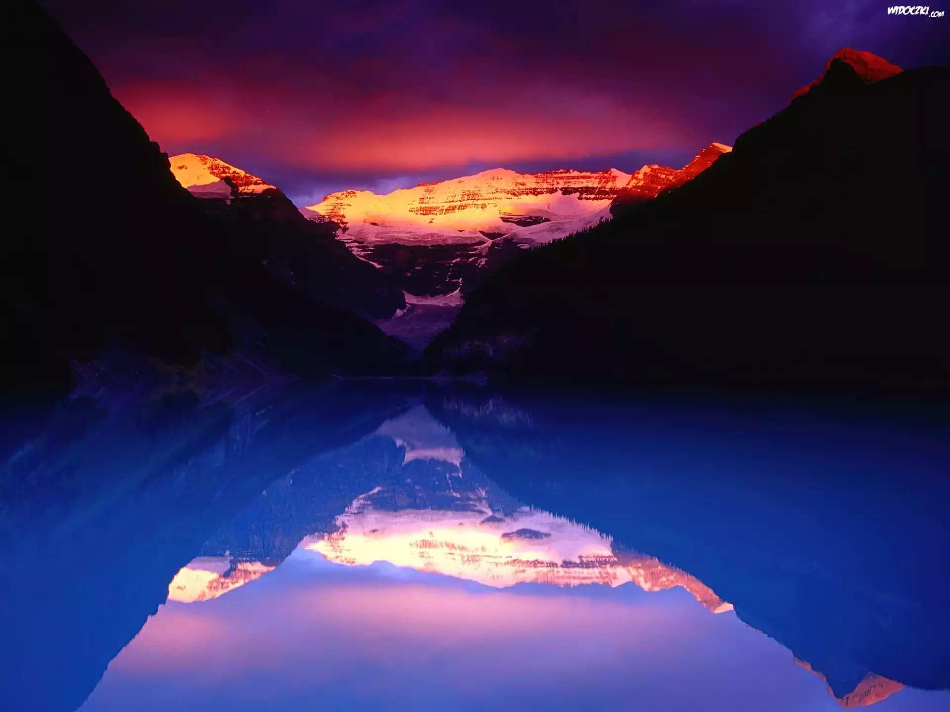 Zdjęcia, Zachód Słońca, Jezioro, Góry, Odbicie