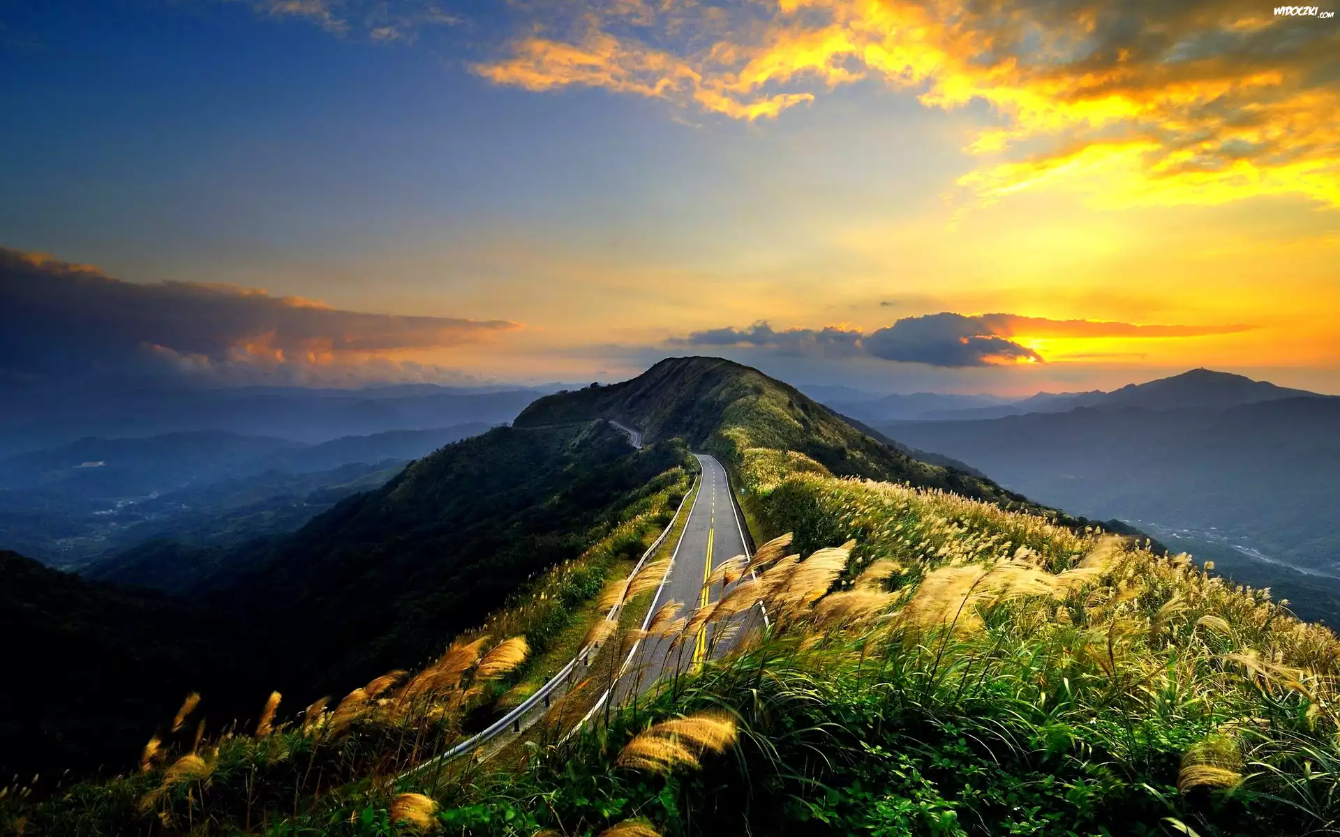 Zdjęcia, Zachód, Słońca, Góry, Droga