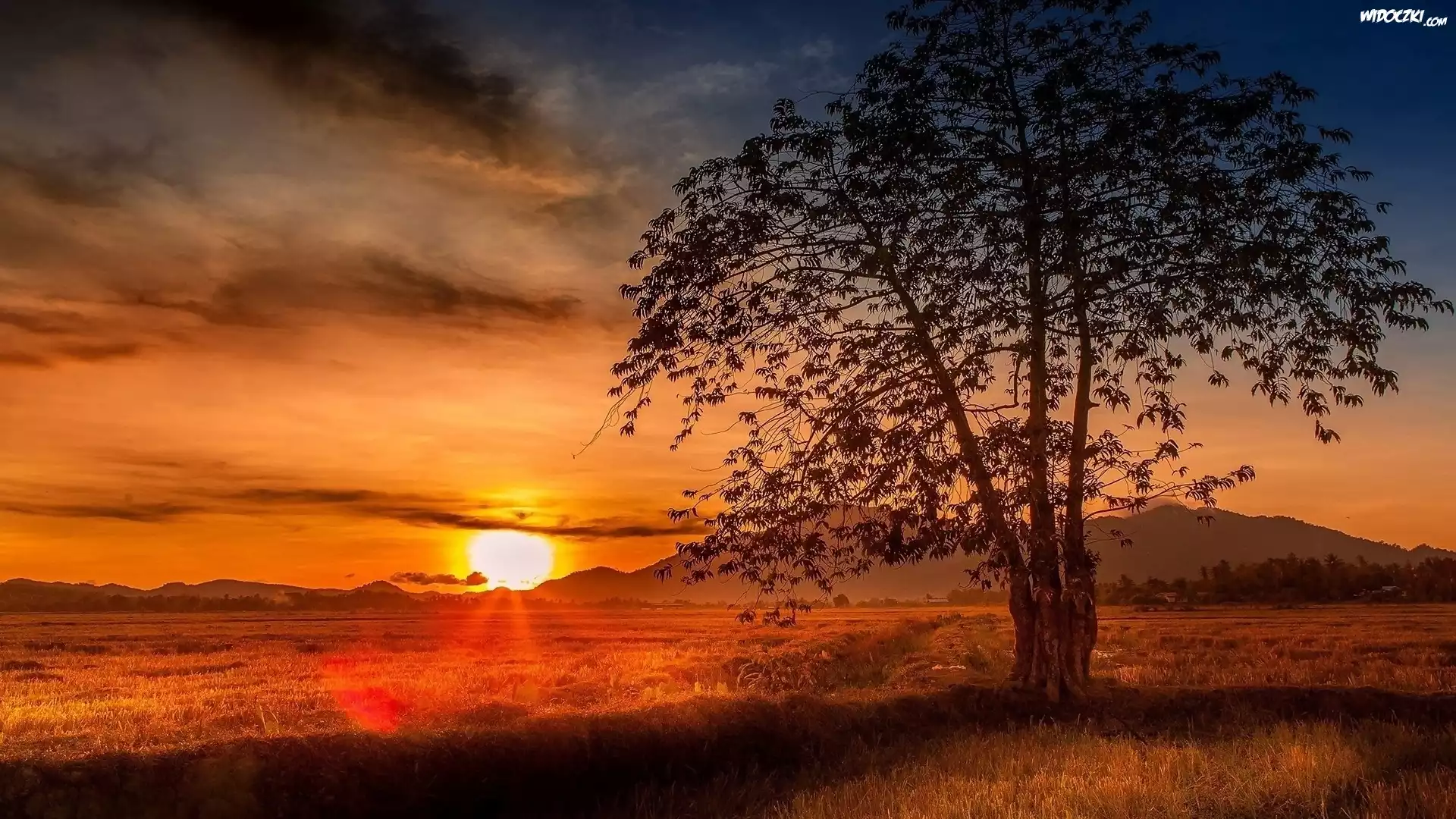 Zdjęcia, Zachód, Słońca, Góry, Drzewo