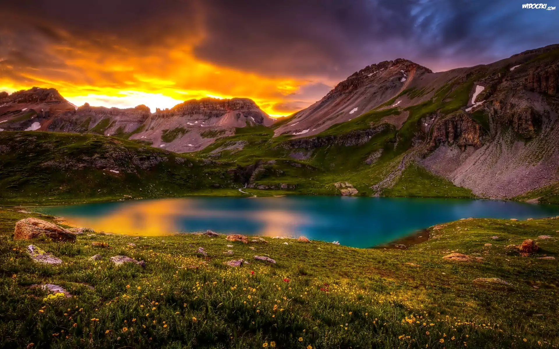 Zdjęcia, Zachód, Słońca, Góry, Jezioro