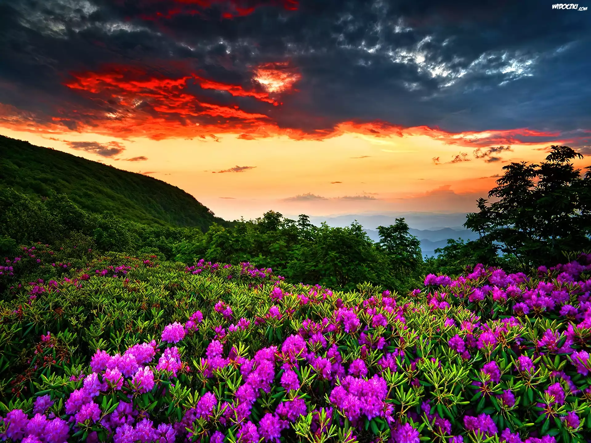 Zdjęcia, Zachód, Słońca, Góry, Kwiatki