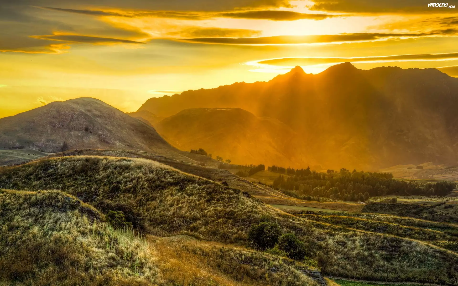 Zdjęcia, Zachód, Słońca, Góry, Las