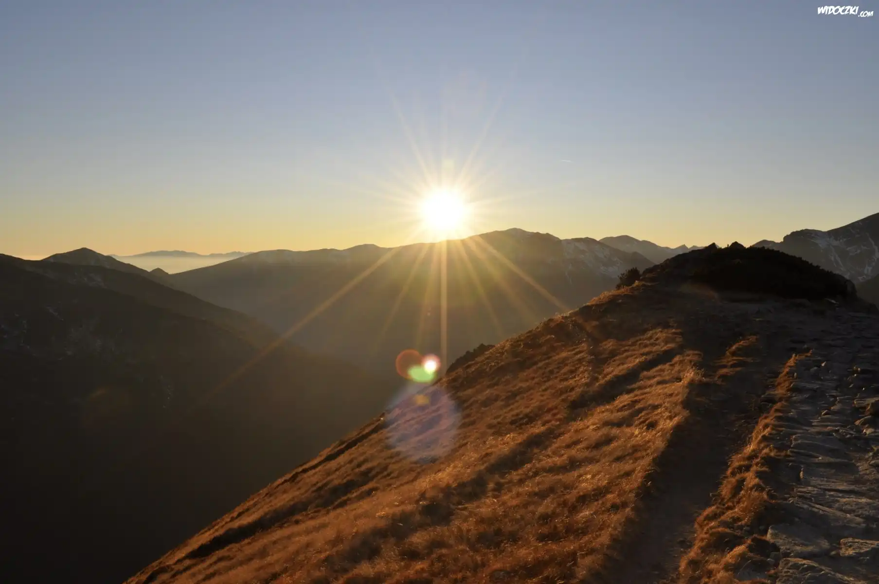 Zdjęcia, Zachód słońca, Góry, Niebo