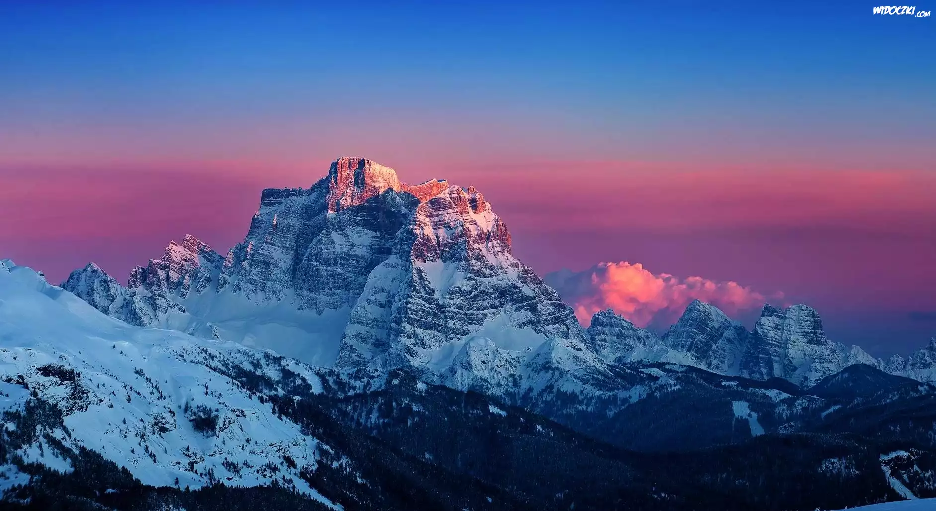 Zdjęcia, Zachód, Słońca, Góry, Śnieg