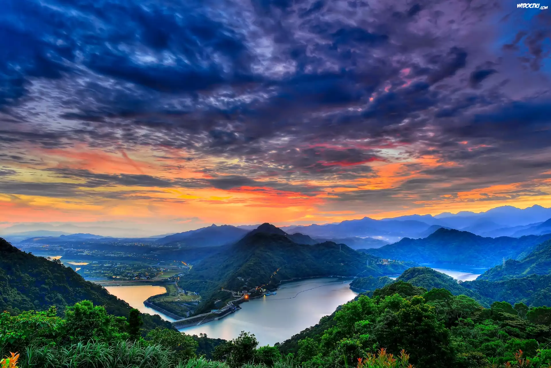 Zdjęcia, Zachód Słońca, Góry, Rzeka