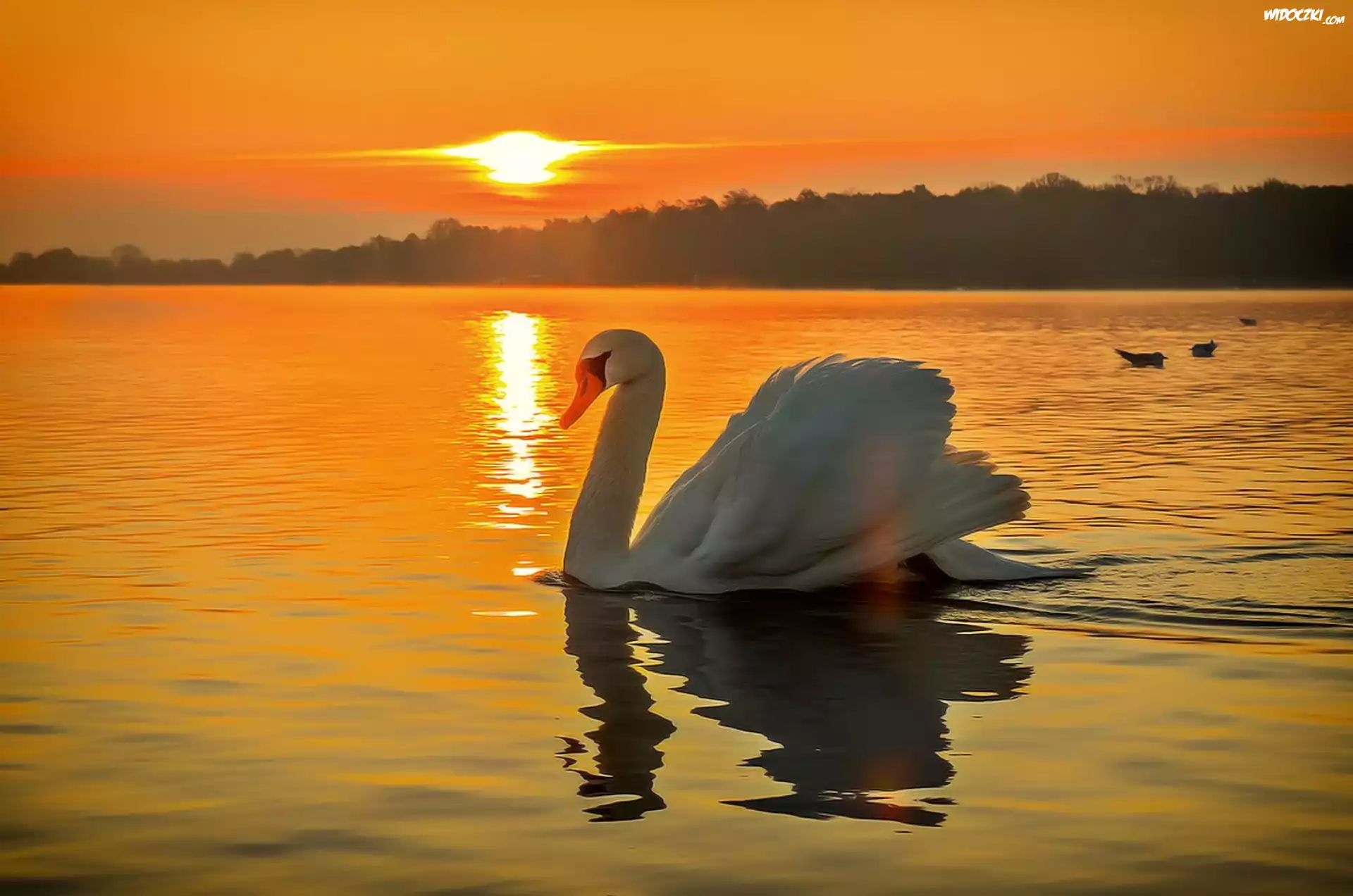 Łabędź, Jezioro, Zachód, Słońca