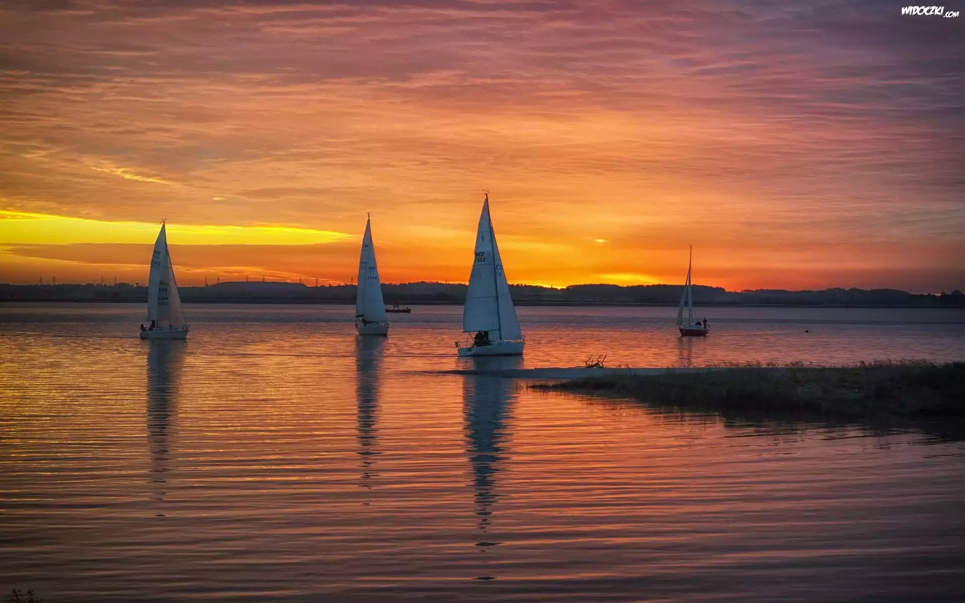 Zdjęcia, Żaglówki, Jezioro, Zachód, Słońca