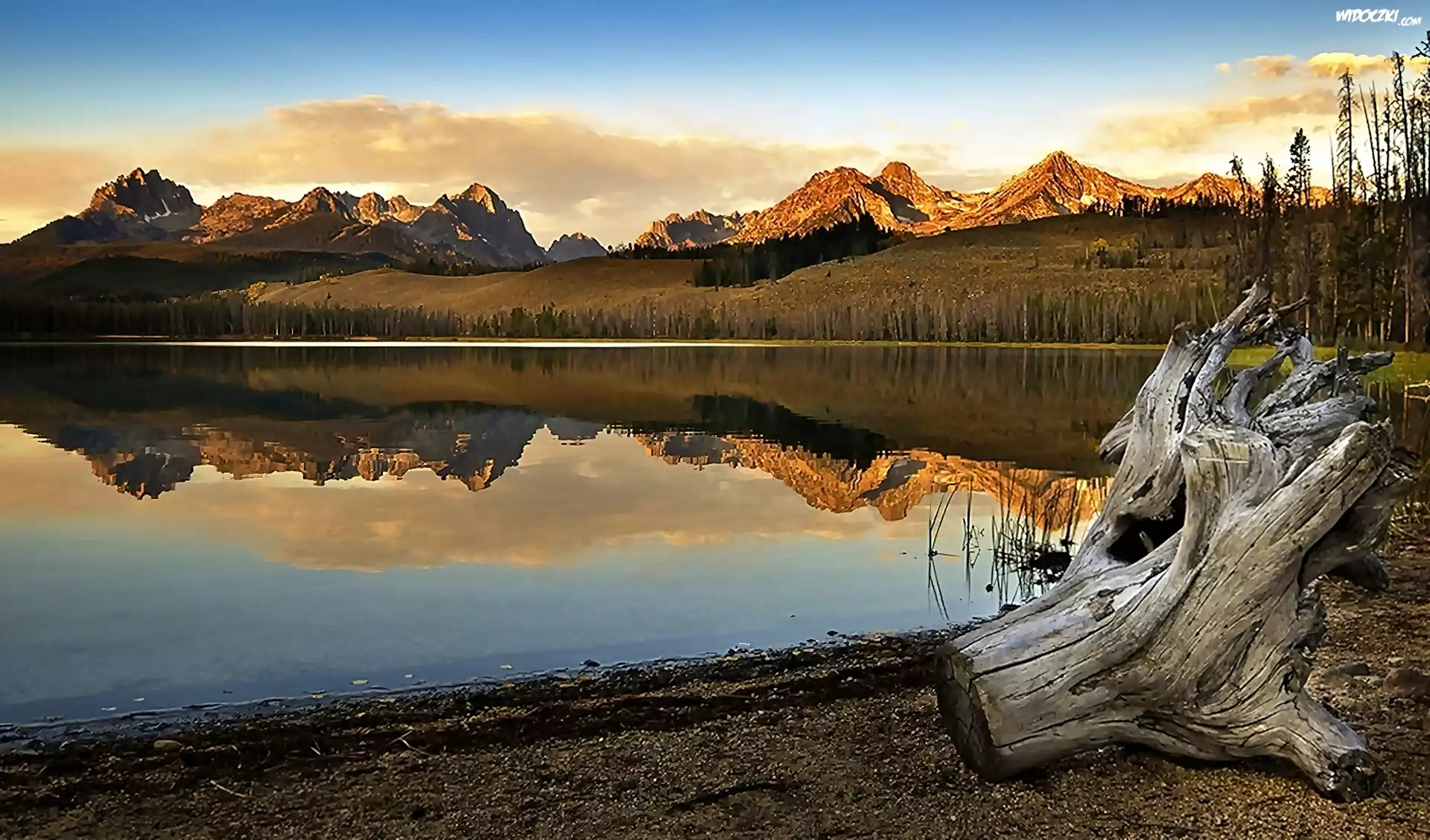 Zdjęcia, Zachód, Słońca, Góry, Jezioro, Karpa