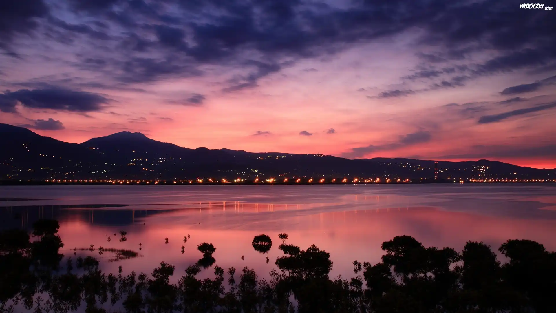 Zdjęcia, Zachód, Słońca, Góry, Jezioro, Światła