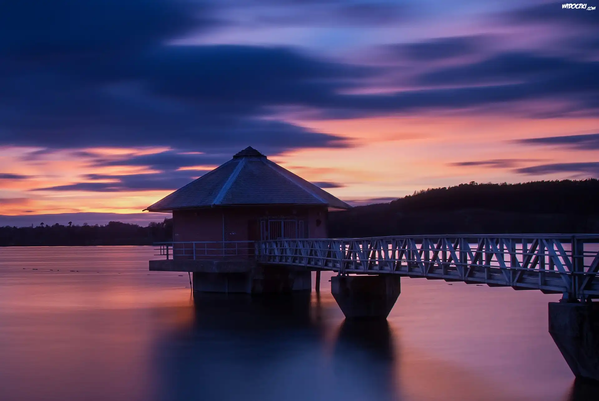 Zdjęcia, Zachód, Słońca, Las, Jezioro, Molo
