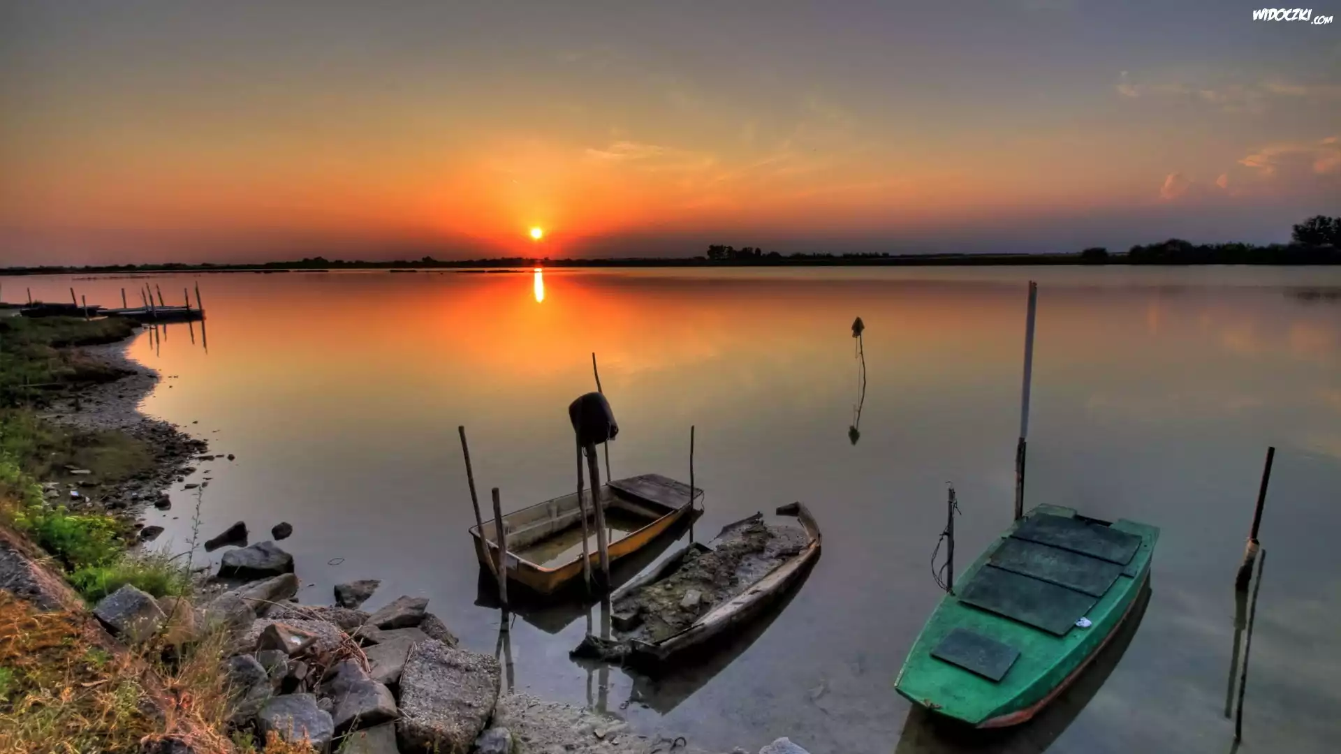 Zdjęcia, Łódki, Jezioro, Zachód Słońca