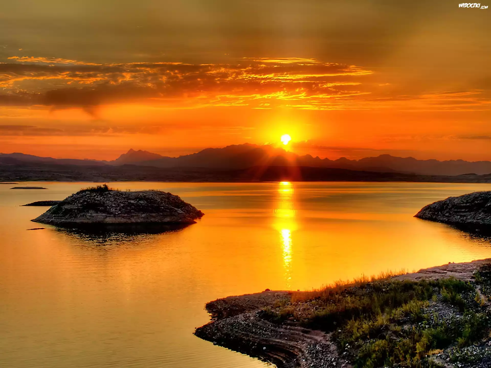 Zdjęcia, Jezioro, Zachód, Słońca