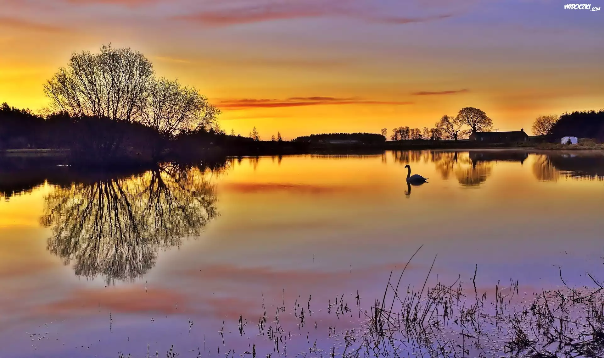 Zdjęcia, Jezioro, Zachód, Słońca