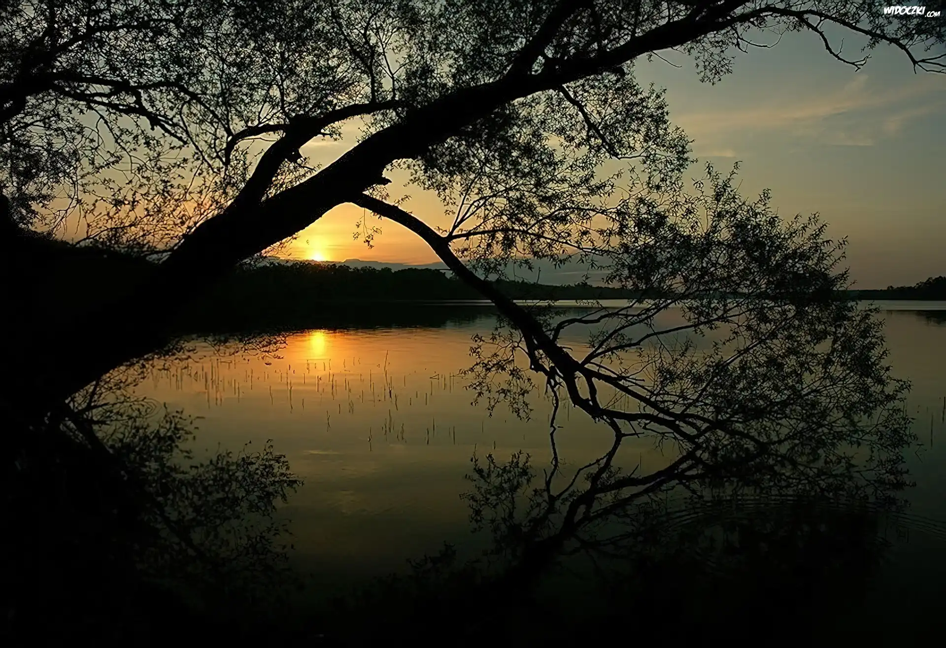Zdjęcia, Jezioro, Zachód, Słońca