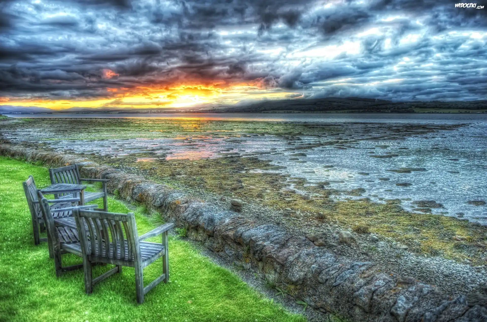 Zdjęcia, Zachód, Słońca, Jezioro, Fotele