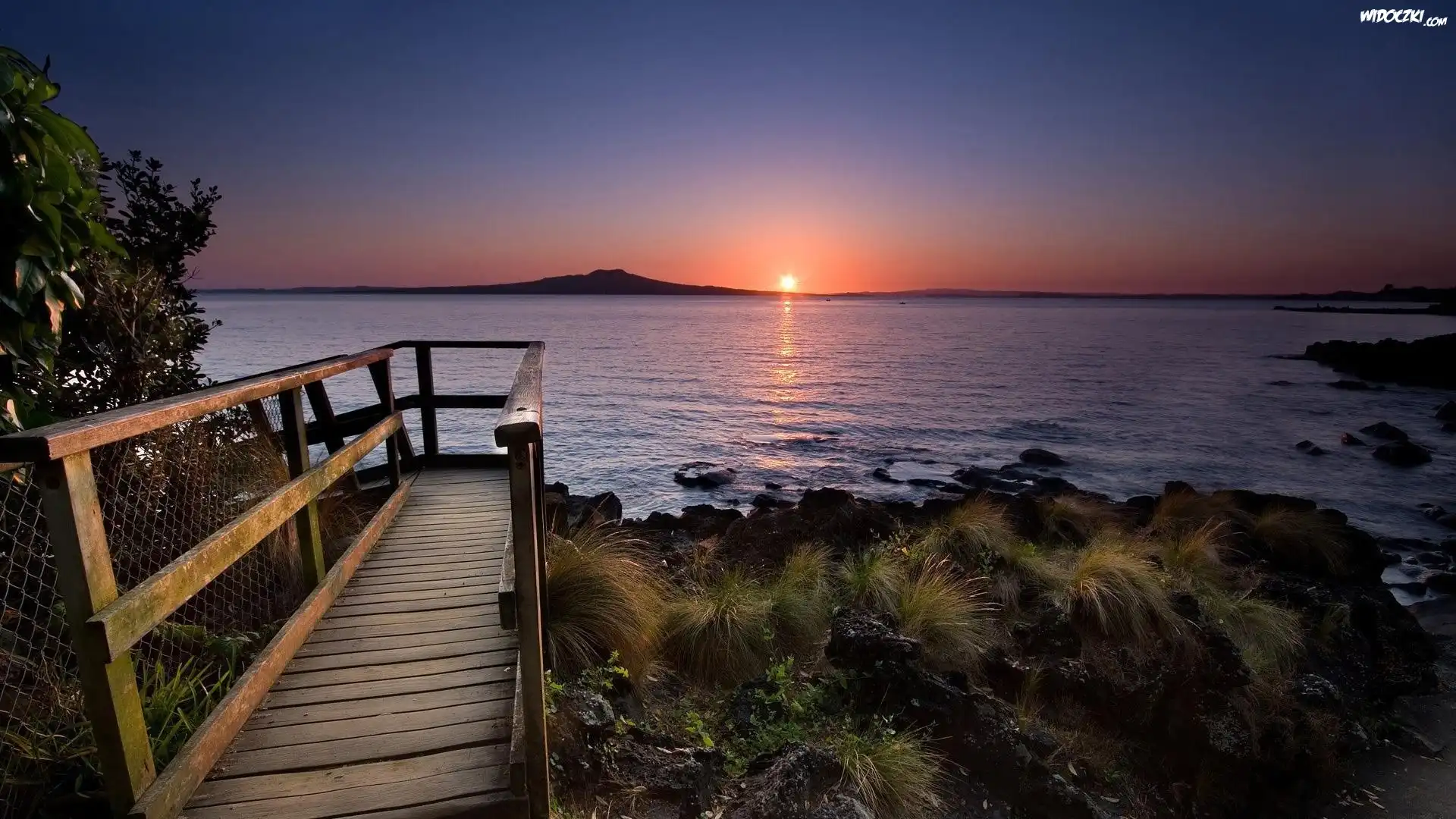 Zdjęcia, Zachód, Słońca, Jezioro, Kładka