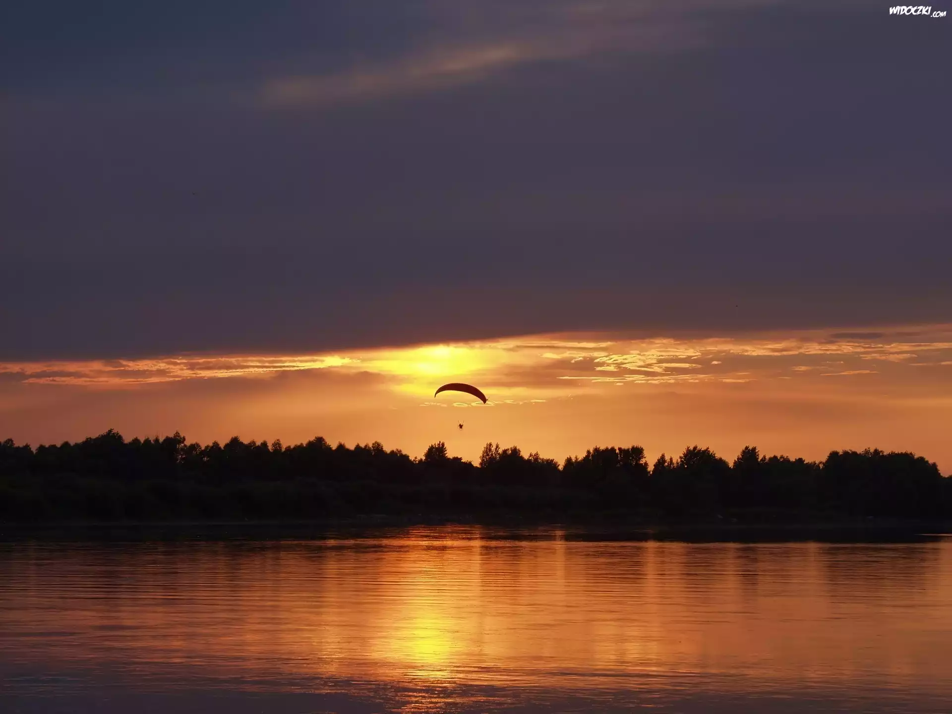 Zdjęcia, Zachód, Słońca, Jezioro, Lotniarz