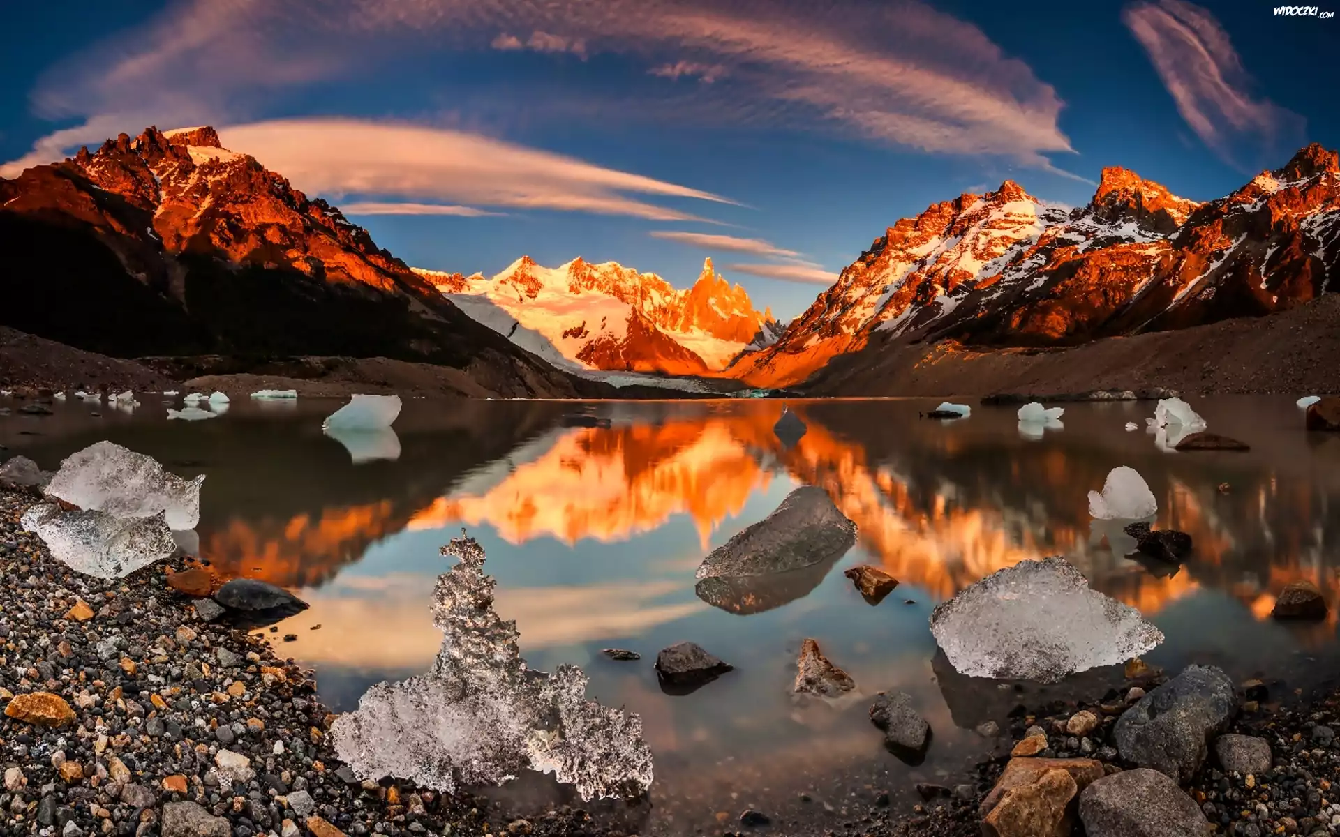 Zdjęcia, Zachód, Słońca, Góry, Jezioro, Kamienie, Skały