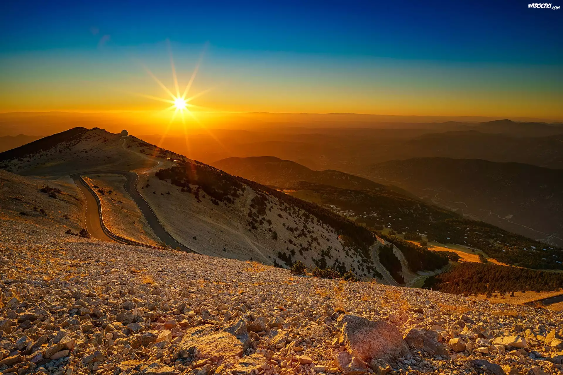 Zdjęcia, Zachód słońca, Góry, Kamienie, Droga