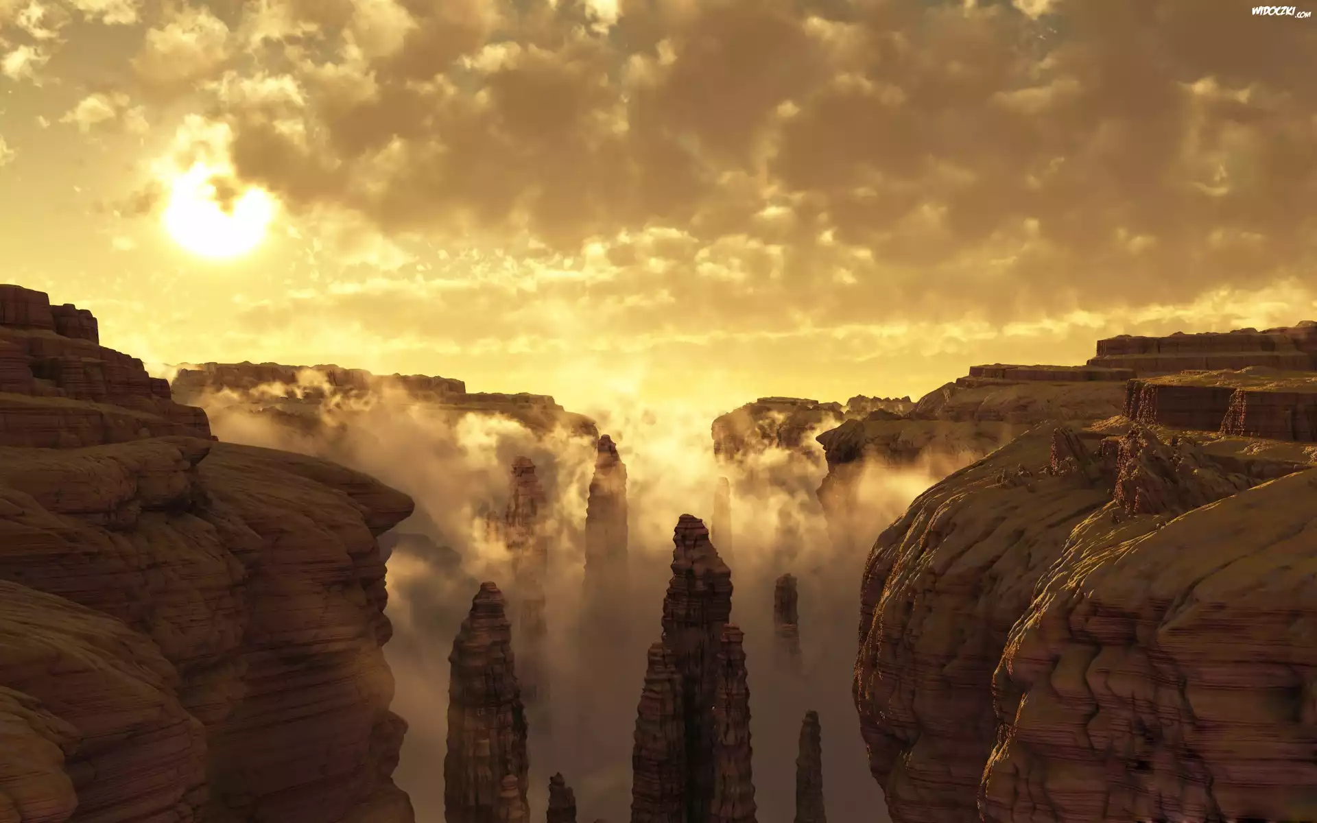 Zdjęcia, Zachód, Słońca, Kanion, Chmury