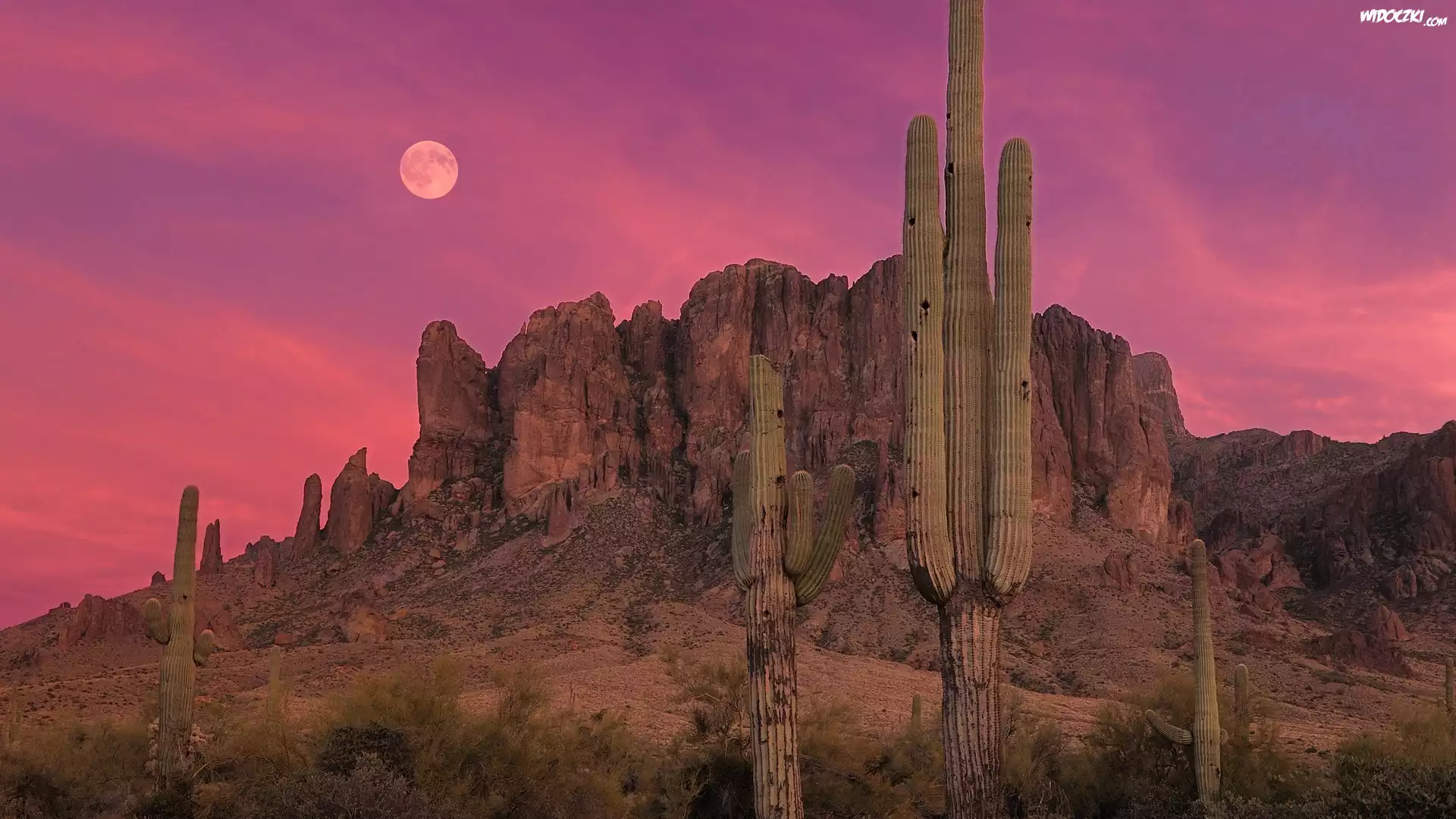 Zdjęcia, Zachód, Słońca, Kanion, Kaktusy