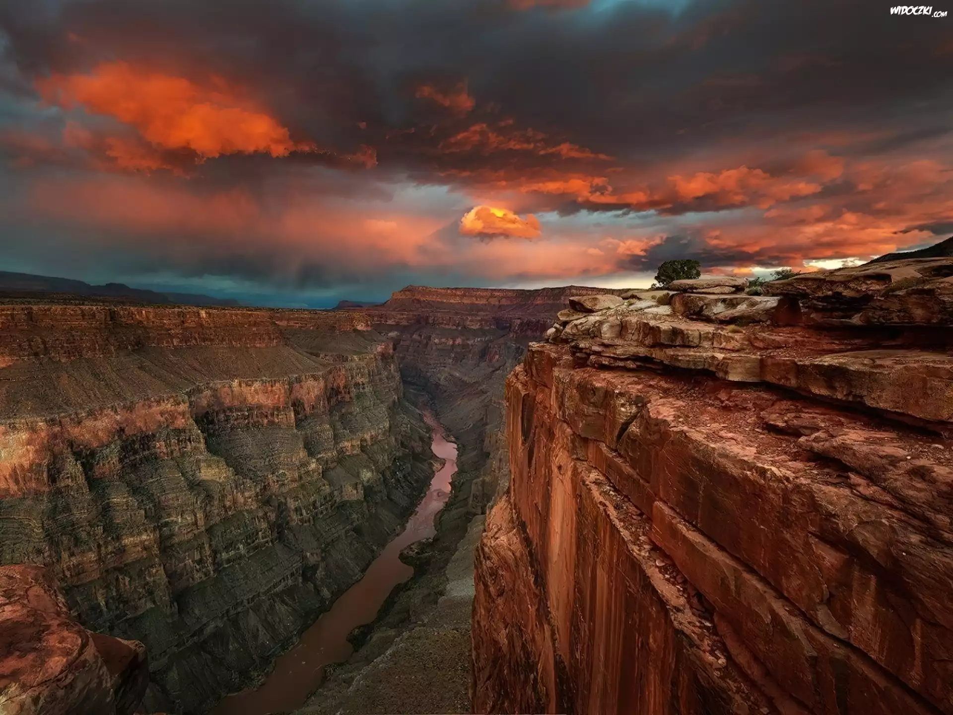 Zdjęcia, Zachód, Słońca, Kanion, Rzeka