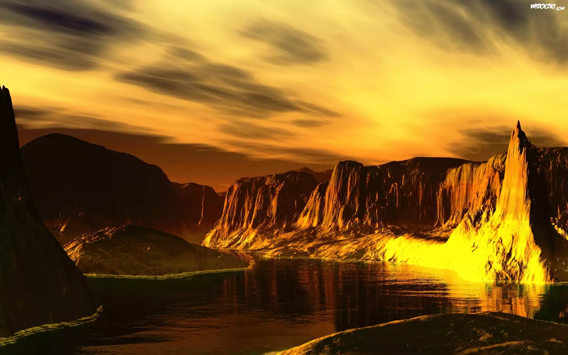 Zdjęcia, Zachód, Słońca, Kaniony, Rzeka
