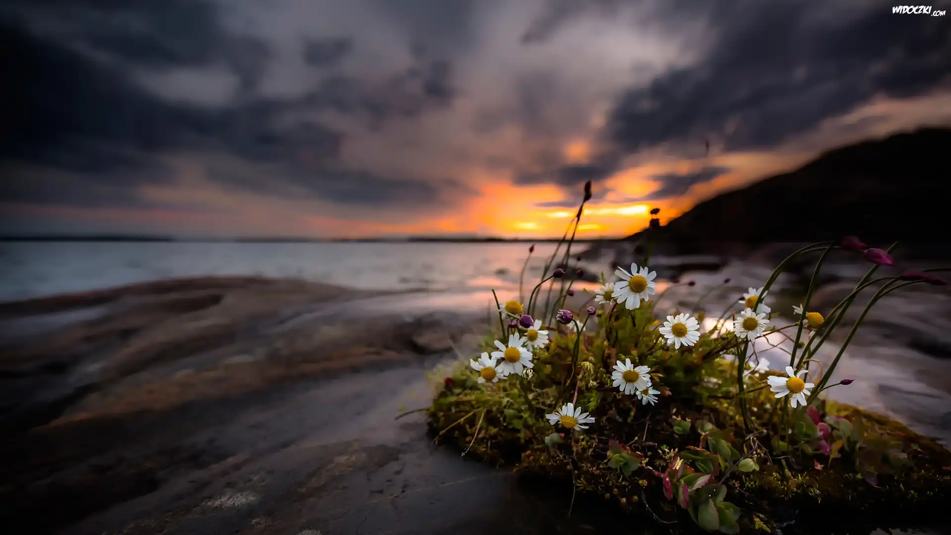 Zachód słońca, Morze, Kępka, Kwiatów