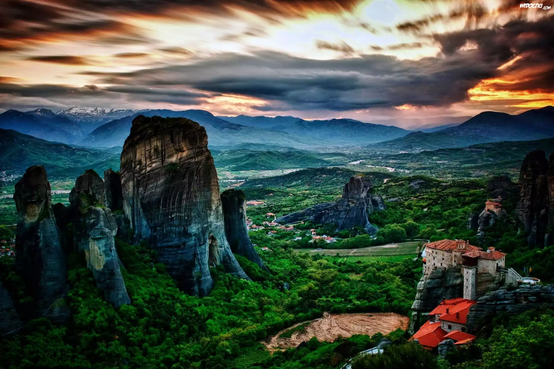 Zdjęcia, Zachód, Słońca, Skały, Klasztor, Meteora