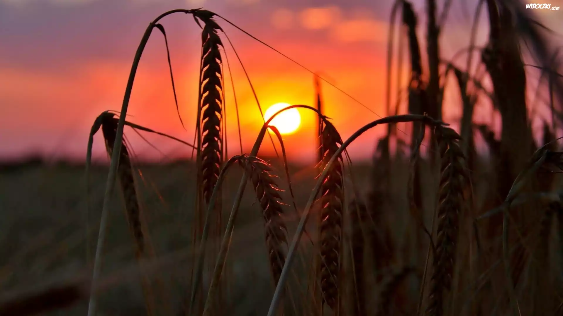 Zachód, Słońca, Kłosy, Zboże