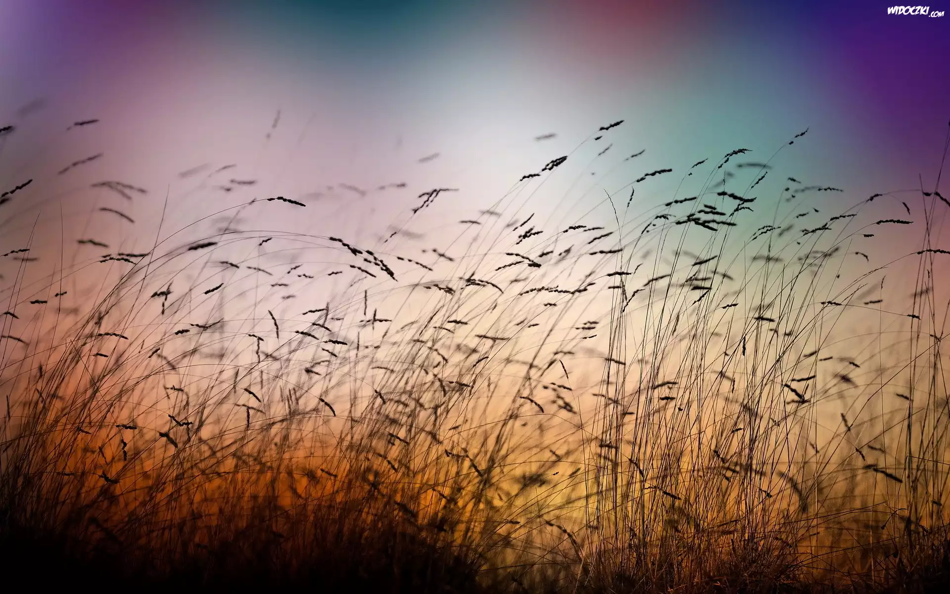 Zdjęcia, Zachód Słońca, Kolory, Trawa