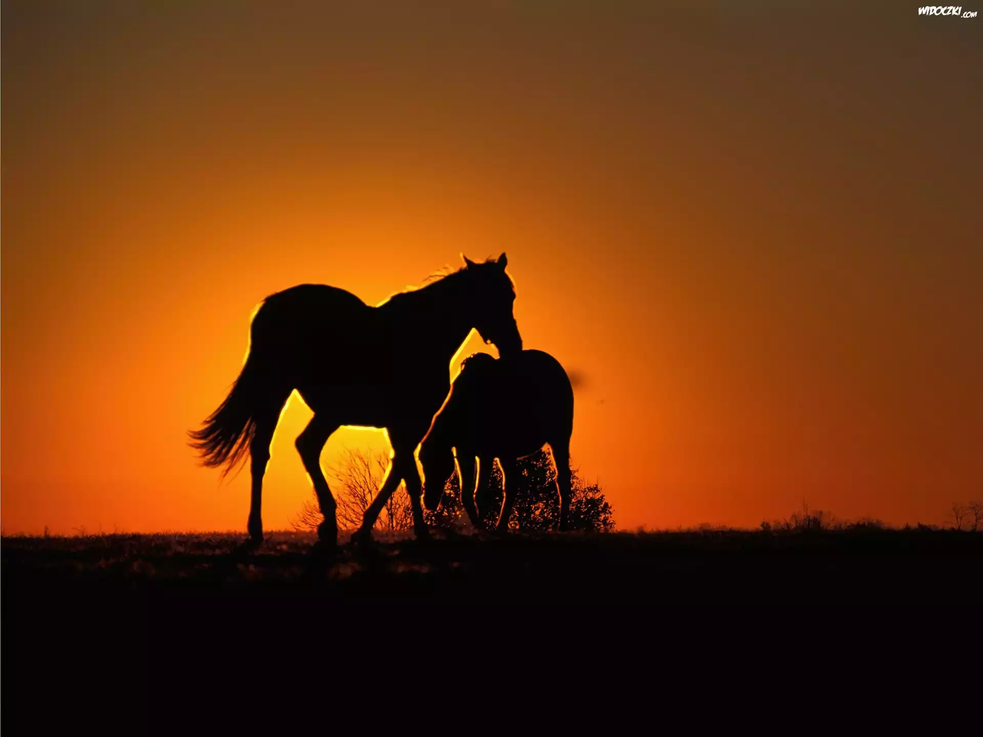Zdjęcia, Konie, Zachód, Słońca