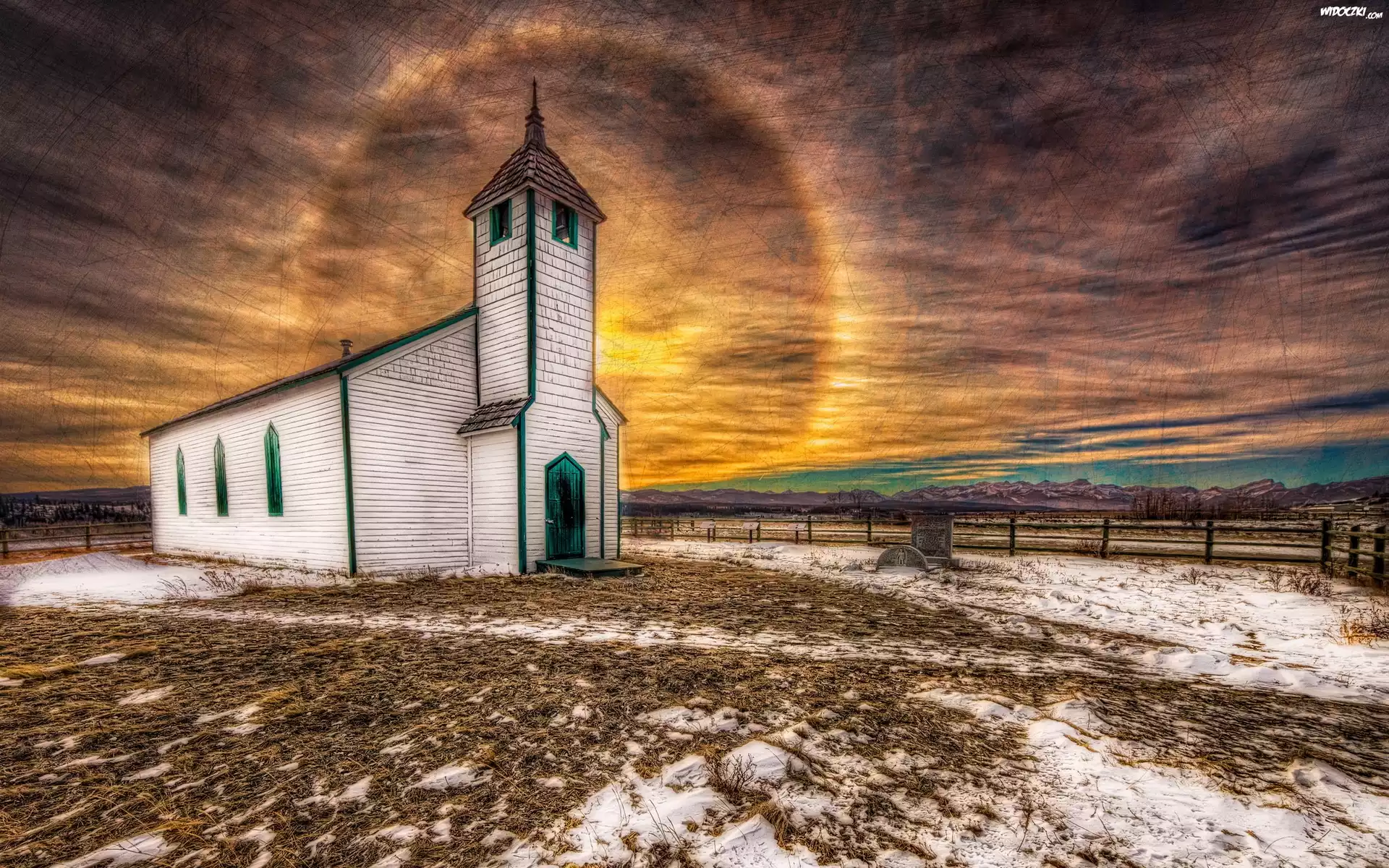 Zdjęcia, Zachód, Słońca, Kościółek, Zima