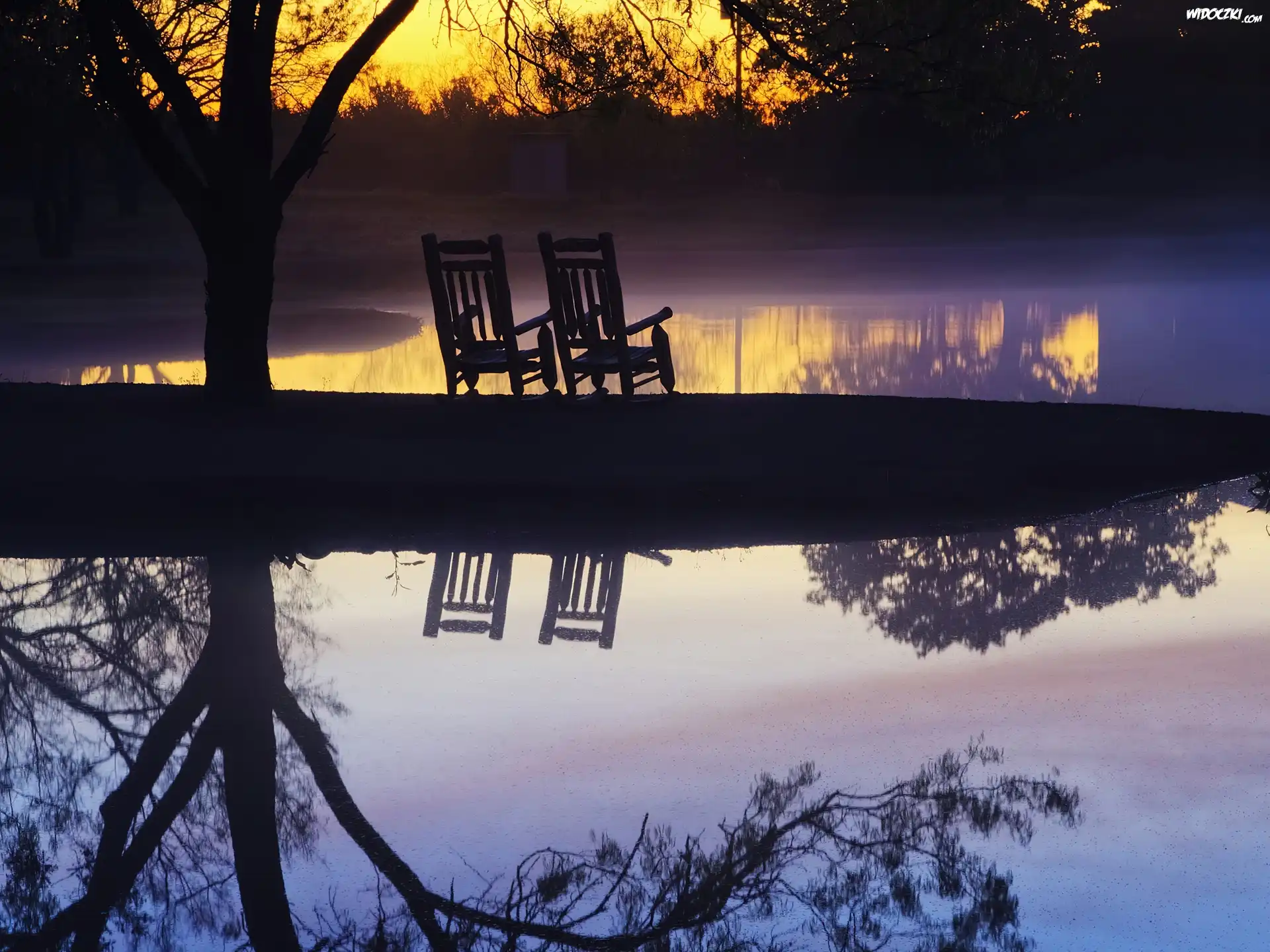 Zdjęcia, Zachód, Słońca, Krzesła, Teksas