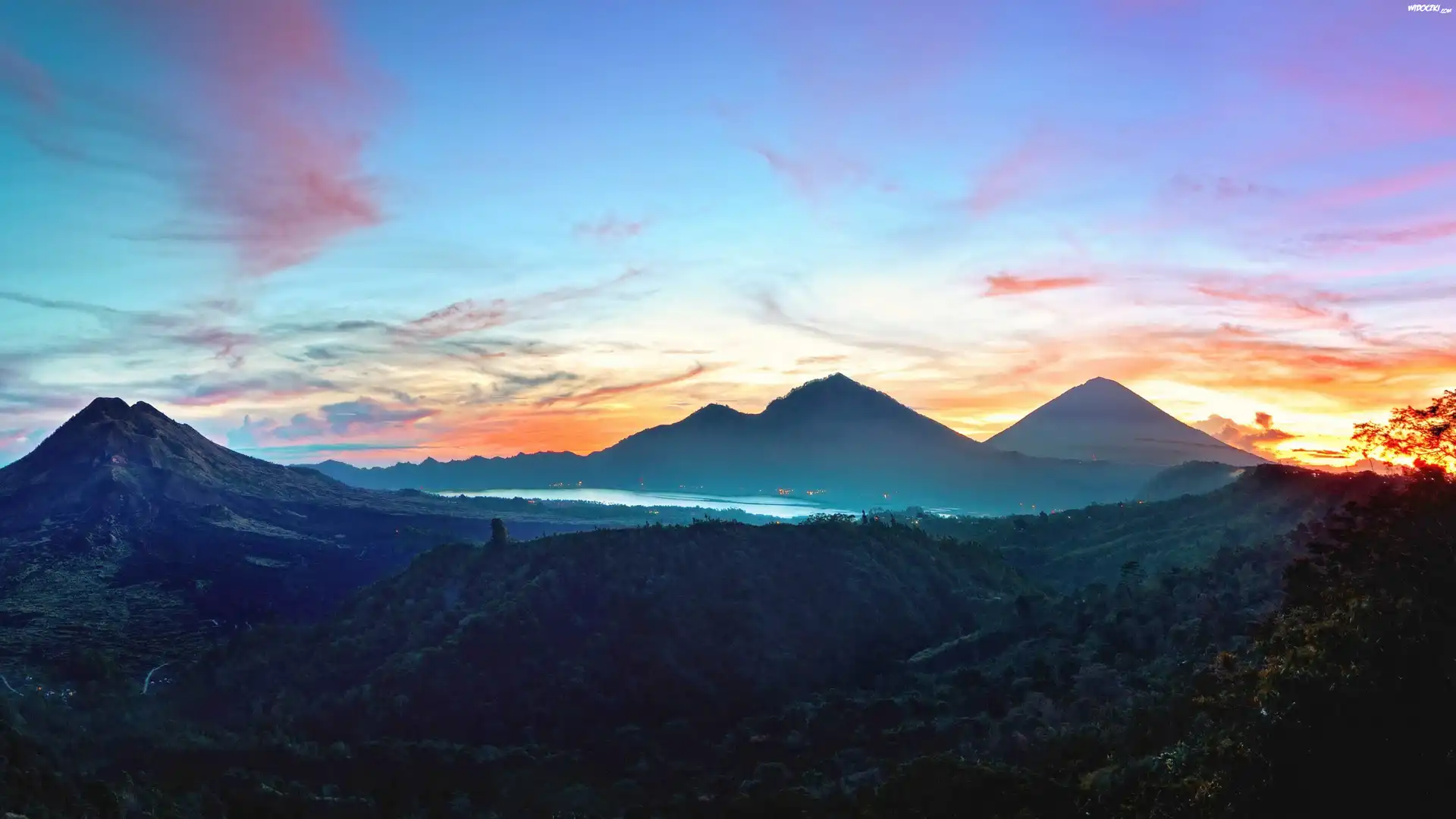 Zdjęcia, Zachód, Słońca, Góry, Las, Jezioro