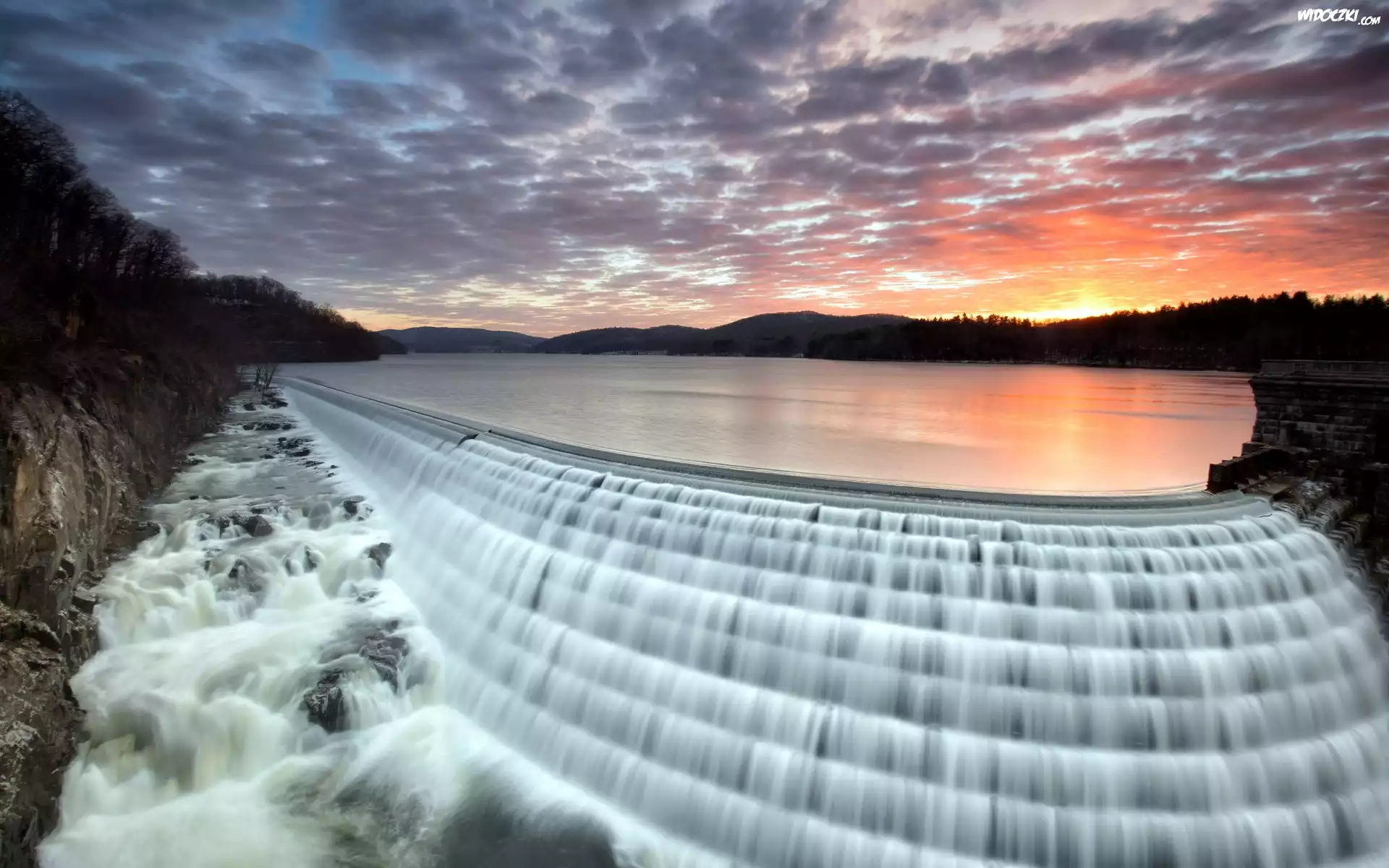 Zdjęcia, Zachód, Słońca, Skały, Las, Wodospad