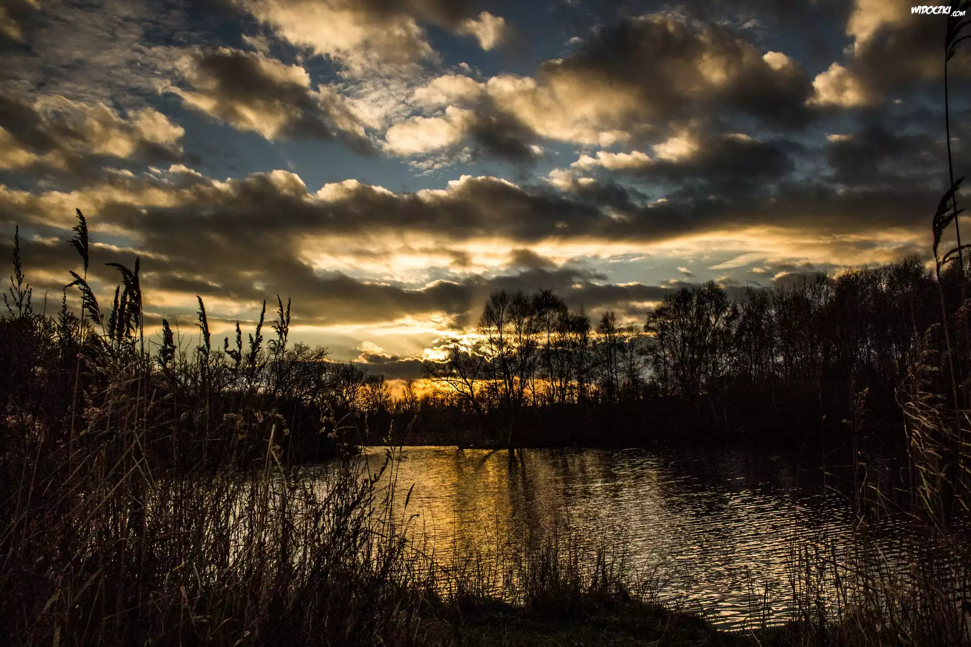 Zdjęcia, Zachód, Słońca, Las, Jezioro