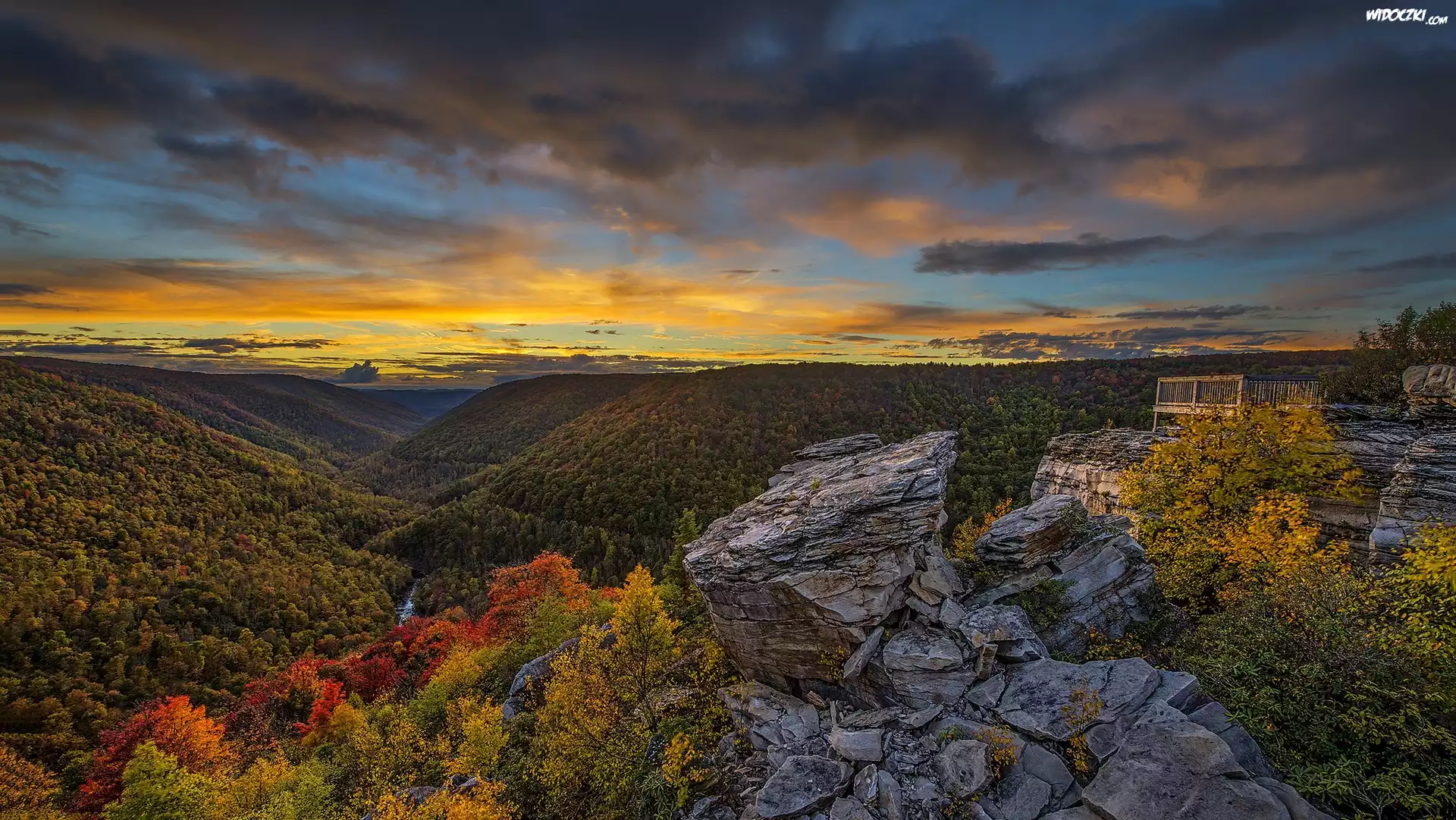 Zdjęcia, Zachód słońca, Góry, Lasy, Jesień