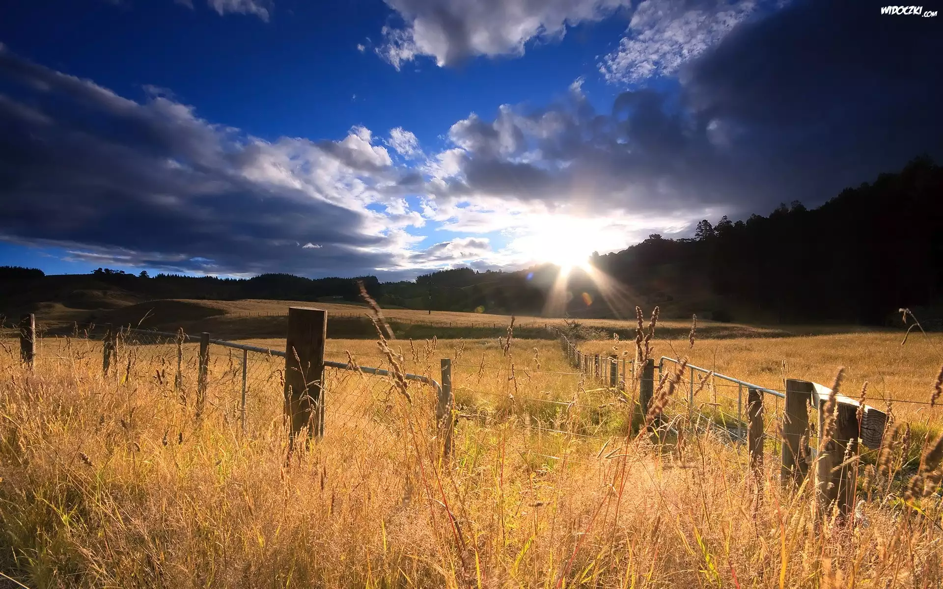 Zdjęcia, Łąki, Lasy, Trawy, Zachód, Słońca