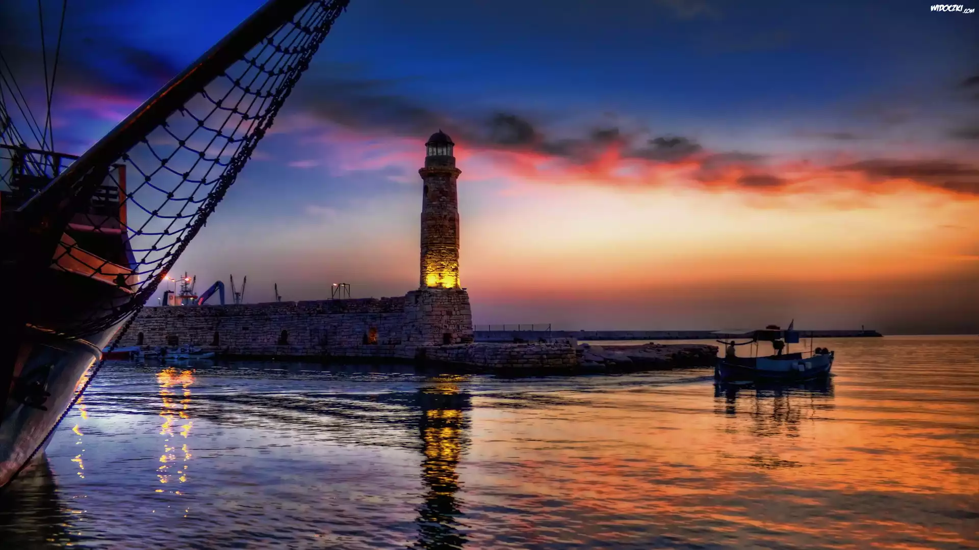 Zdjęcia, Zachód, Słońca, Latarnia, Morska